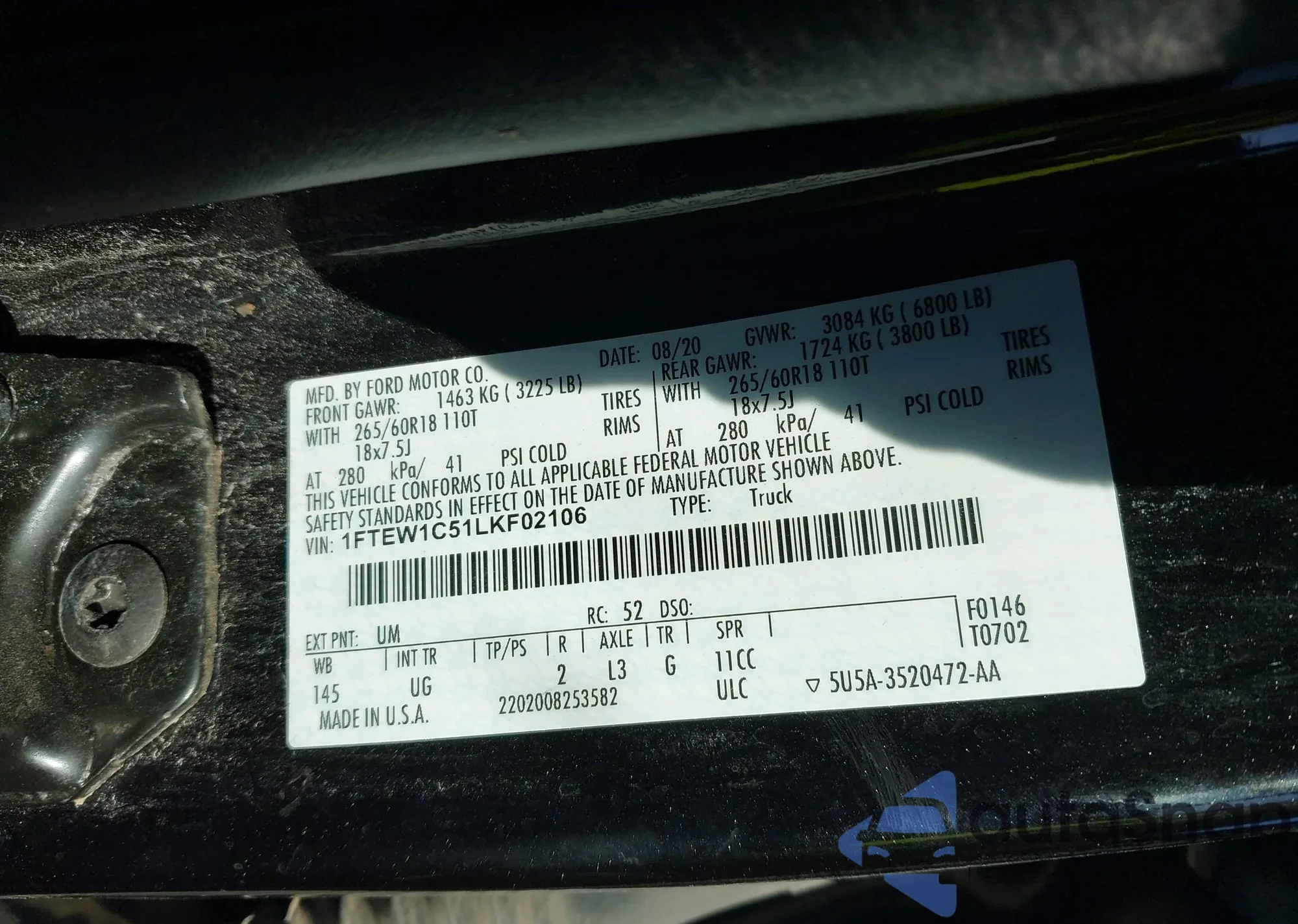 LOT: 43760511 VIN: 1FTEW1C51LKF02106