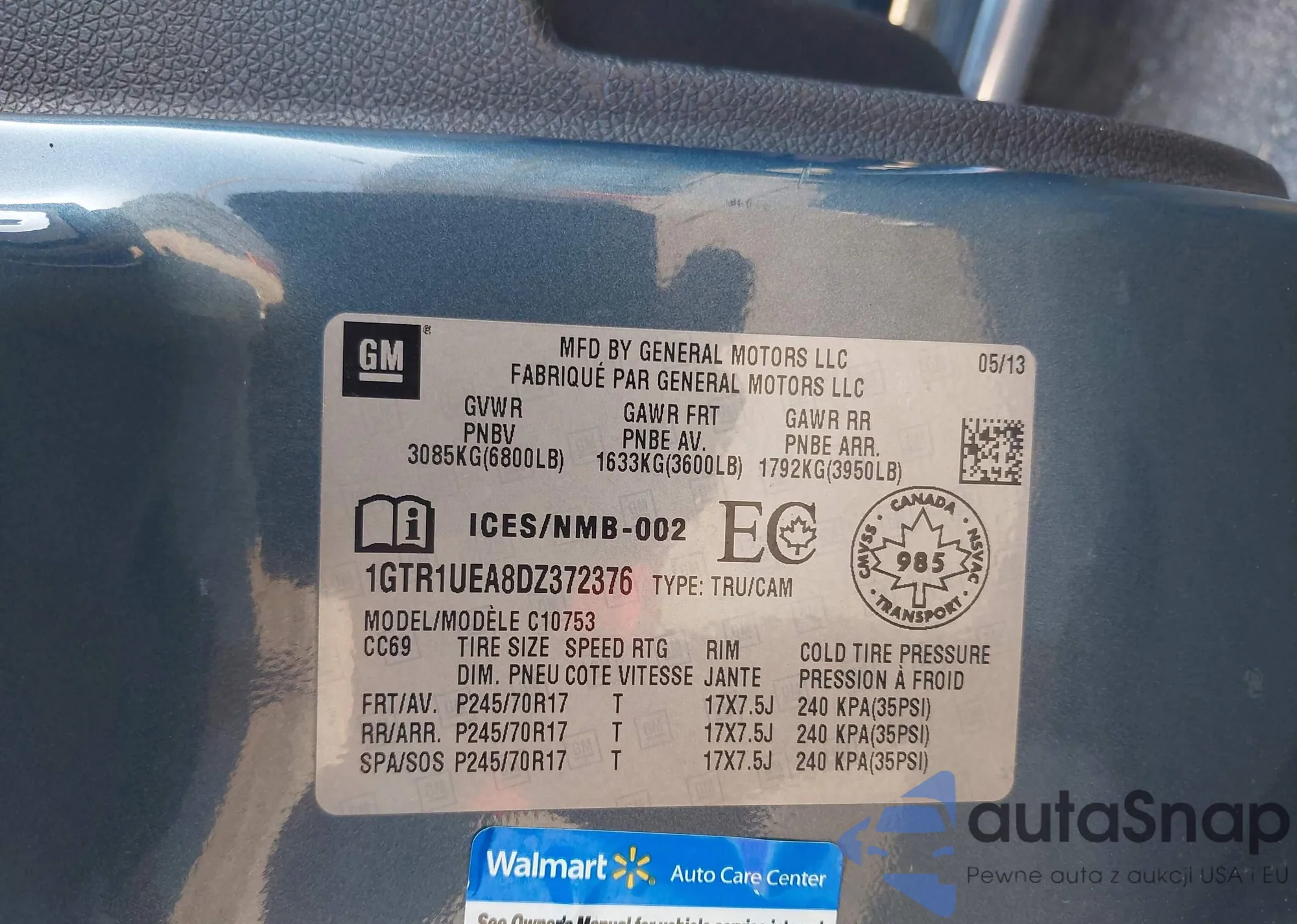 • VIN 1GTR1UEA8DZ372376