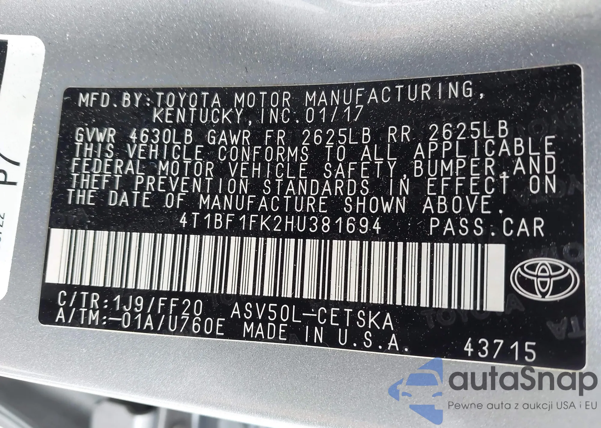 • Lot number 43694658