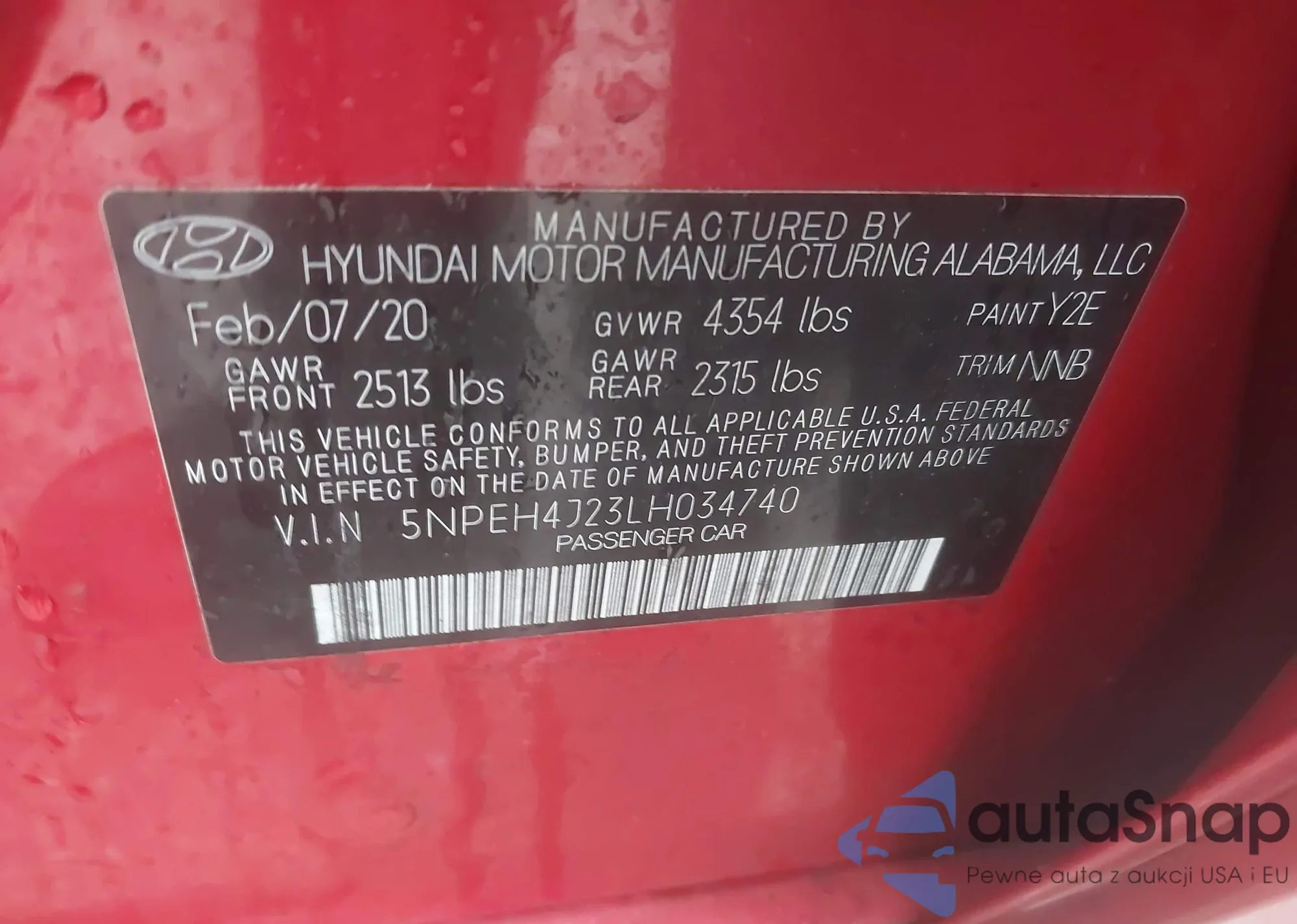 • VIN 5NPEH4J23LH034740