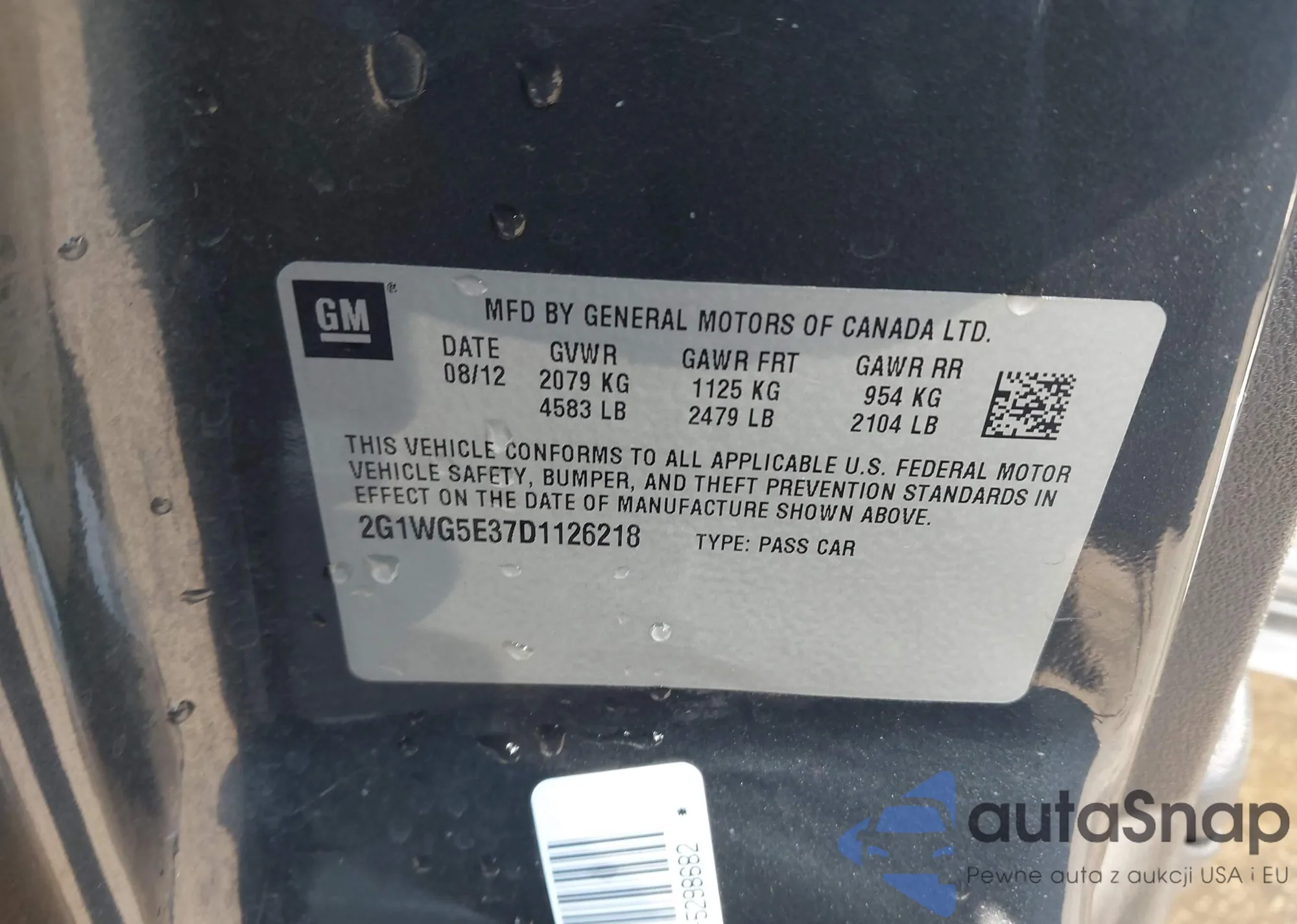 LOT: 43891235 VIN: 2G1WG5E37D1126218