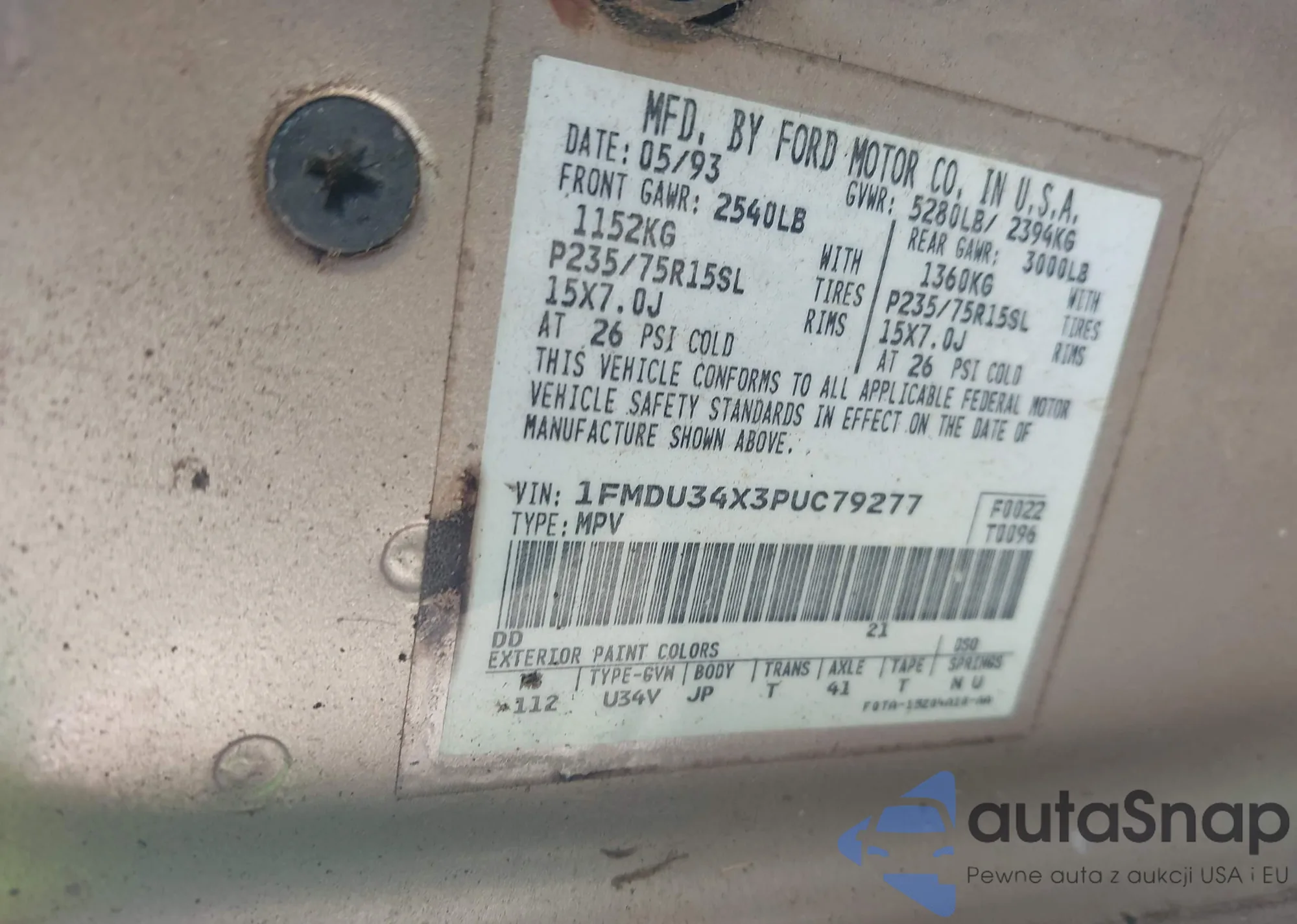 LOT: 43898693 VIN: 1FMDU34X3PUC79277