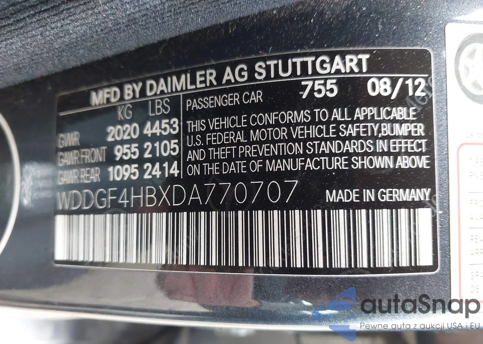 • VIN WDDGF4HBXDA770707