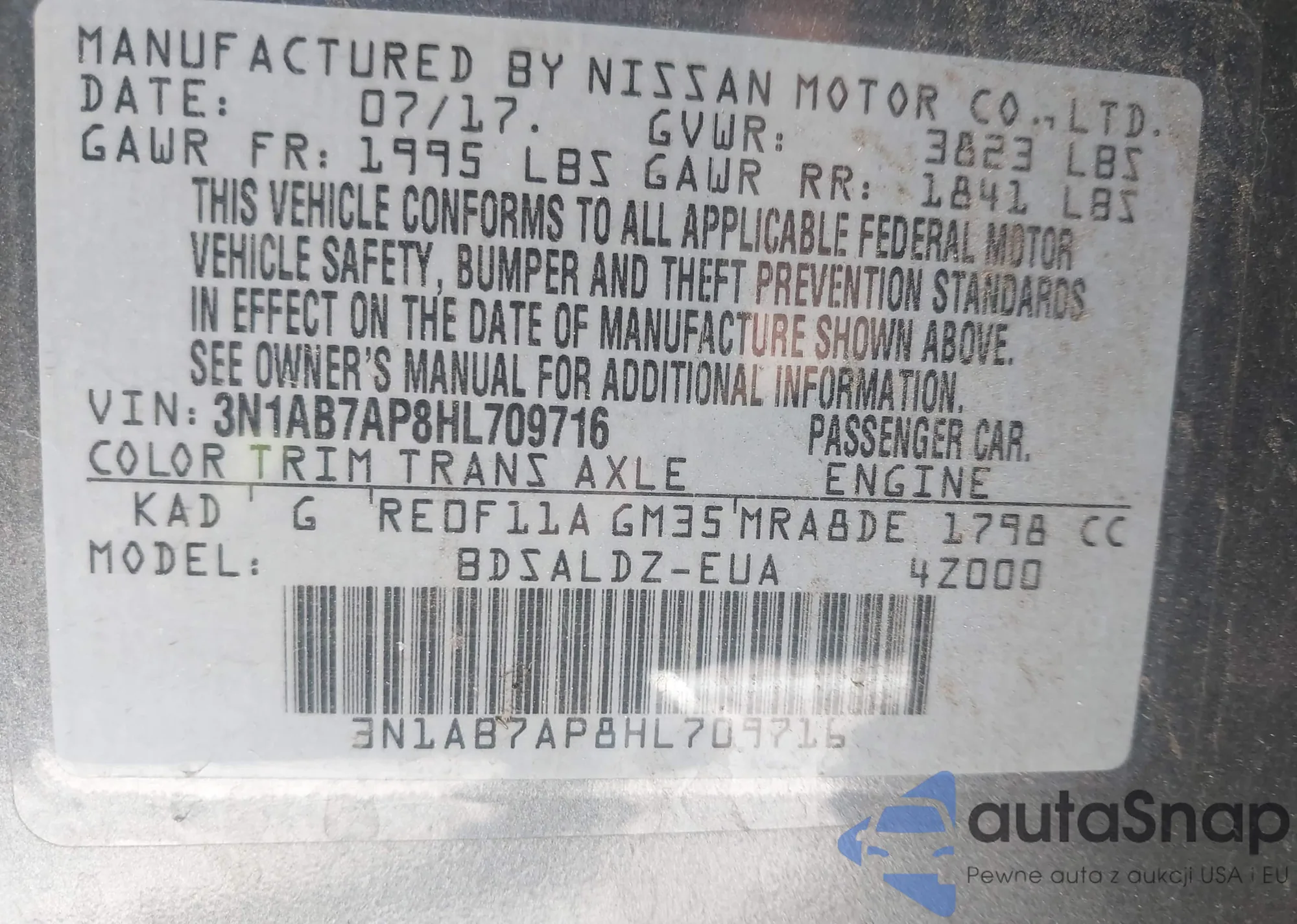 LOT: 43872391 VIN: 3N1AB7AP8HL709716
