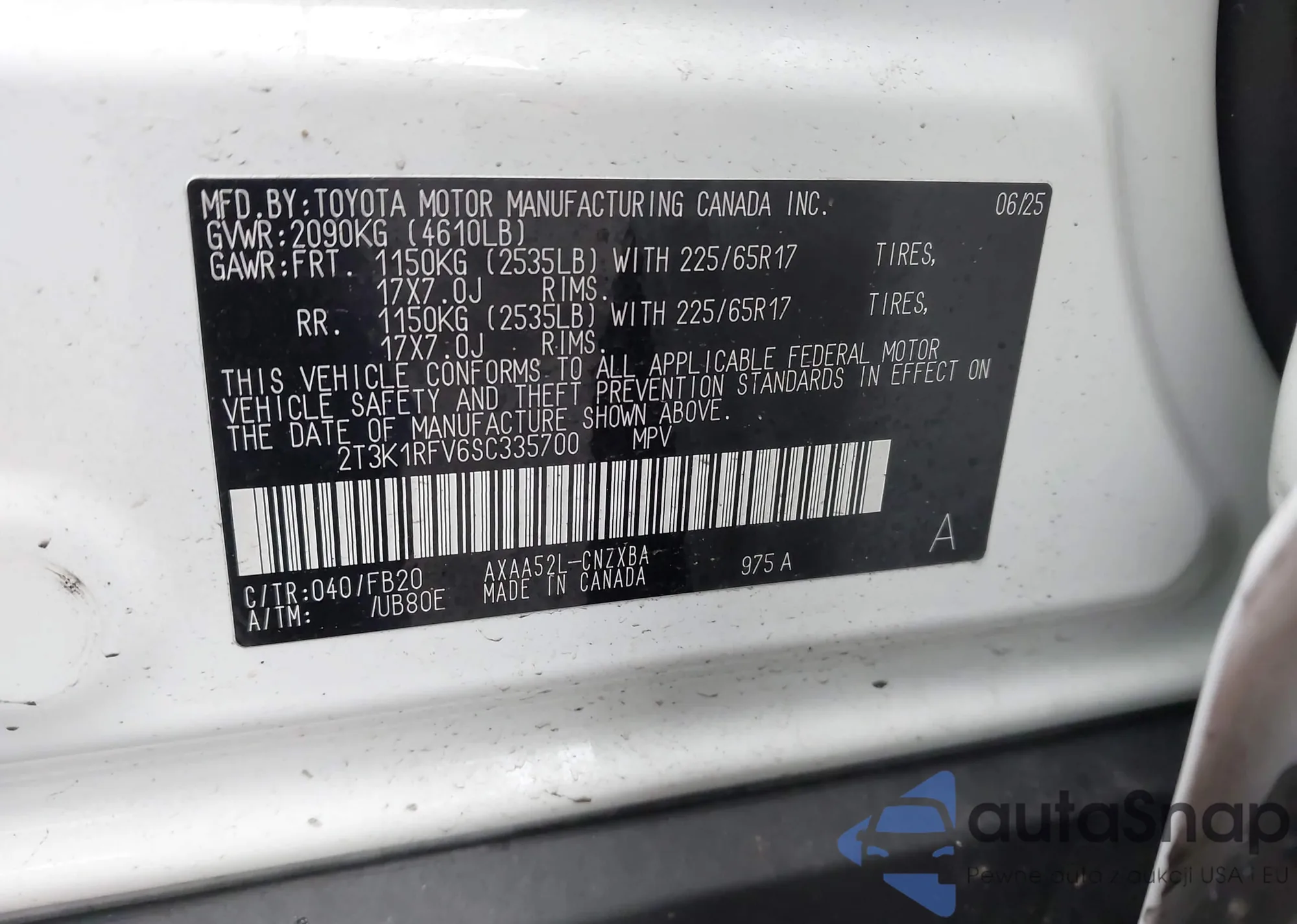 • VIN 2T3K1RFV6SC335700