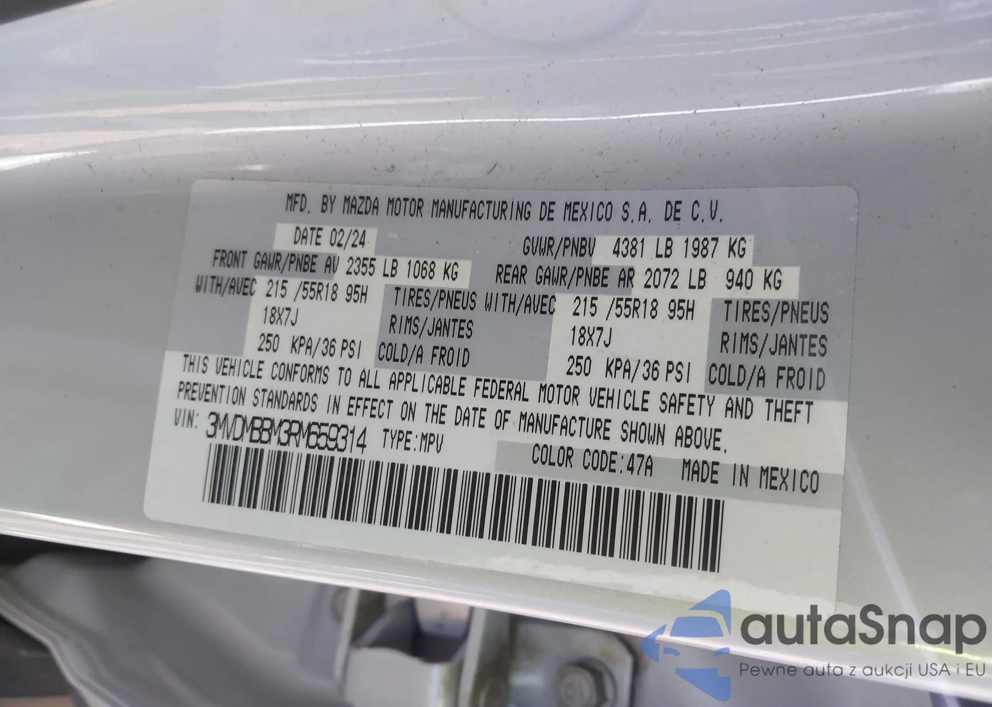 • VIN 3MVDMBBM3RM659314
