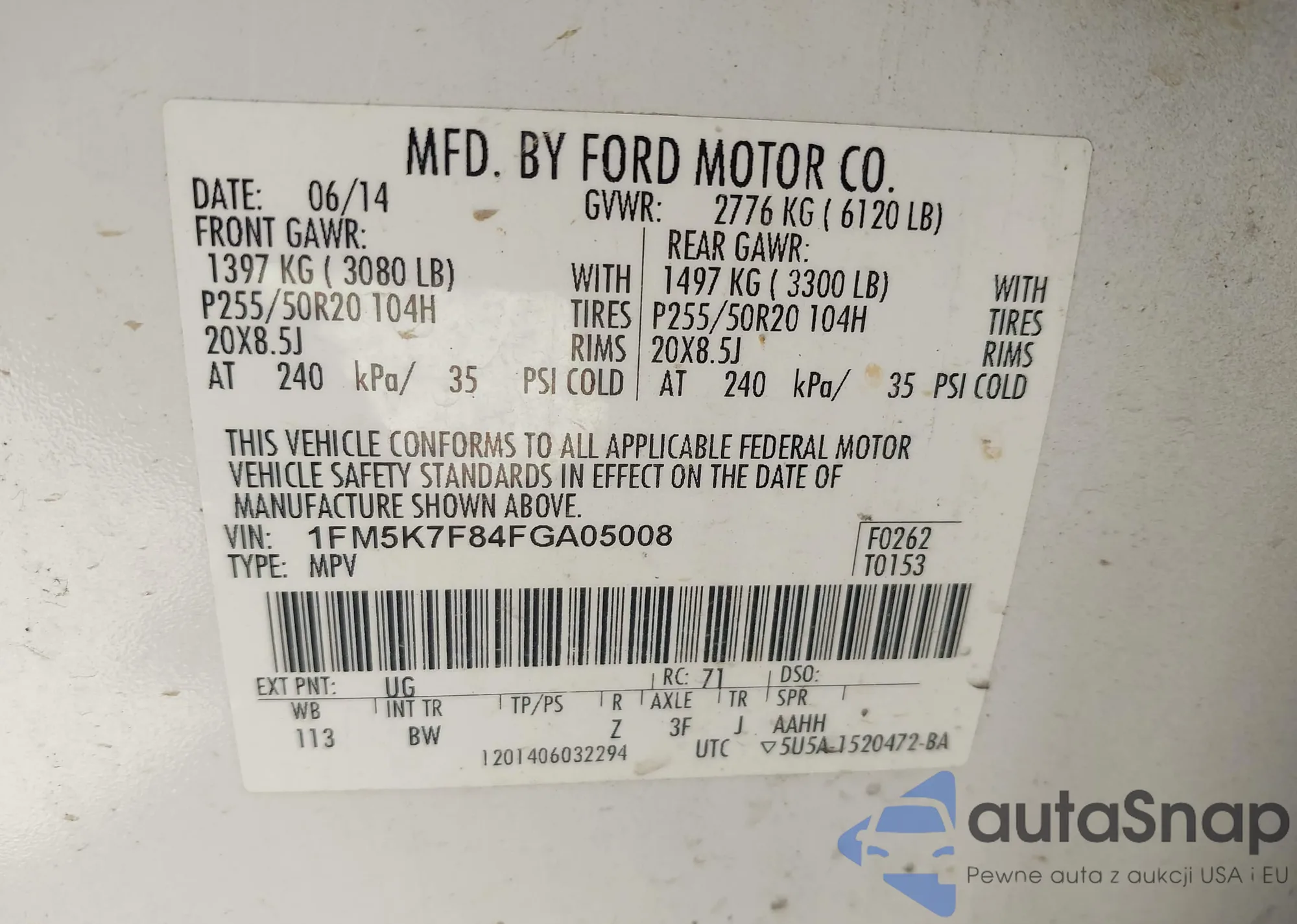 LOT: 43914770 VIN: 1FM5K7F84FGA05008