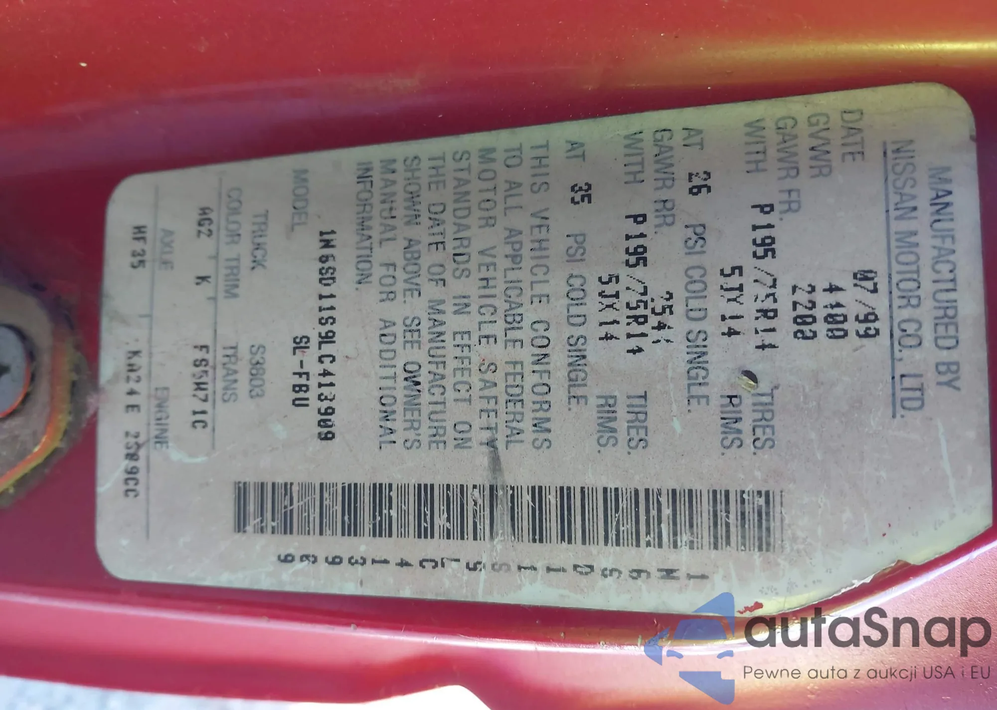 LOT: 43926885 VIN: 1N6SD11S9LC413909