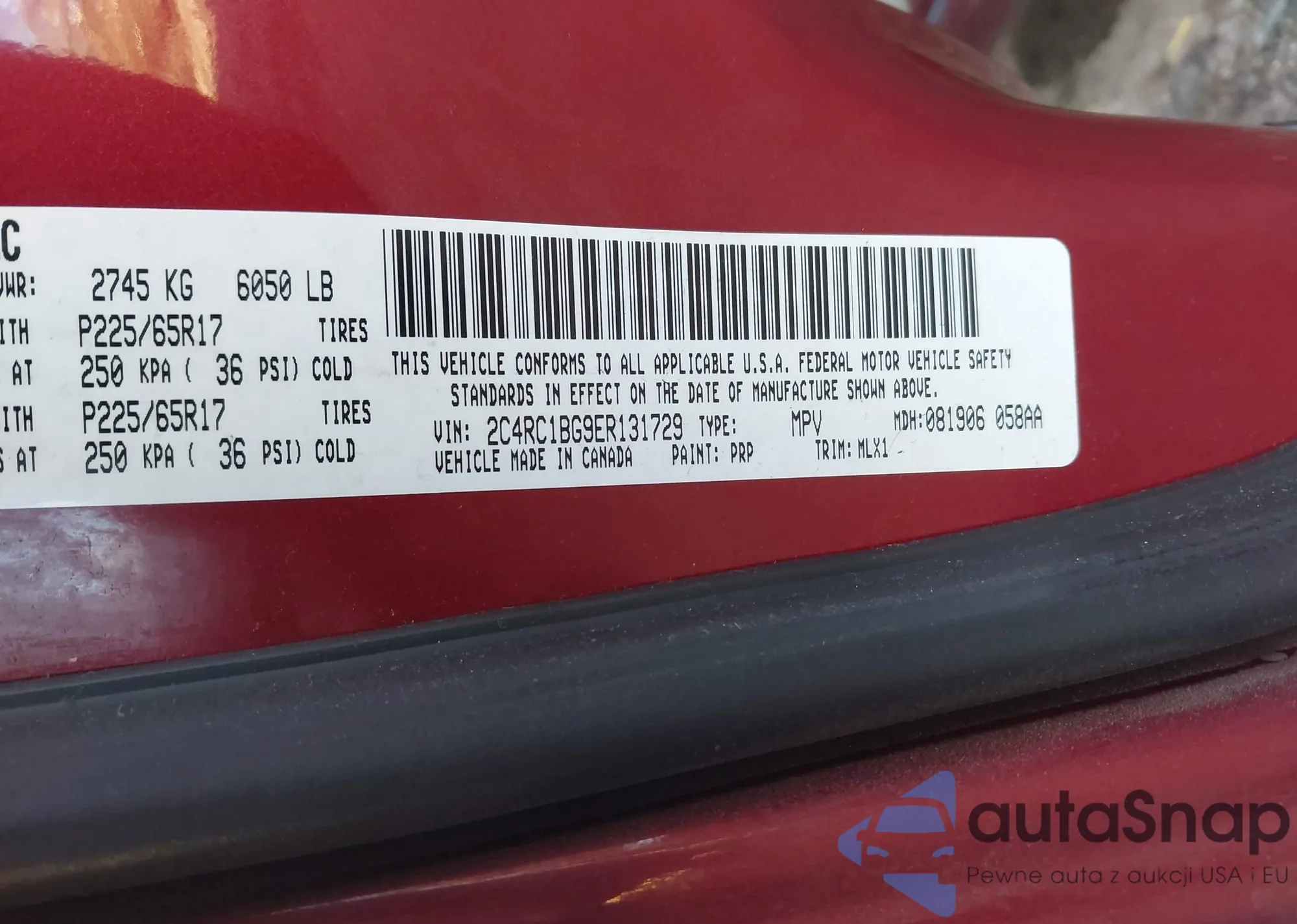 • VIN 1C4RDJDG0MC522320