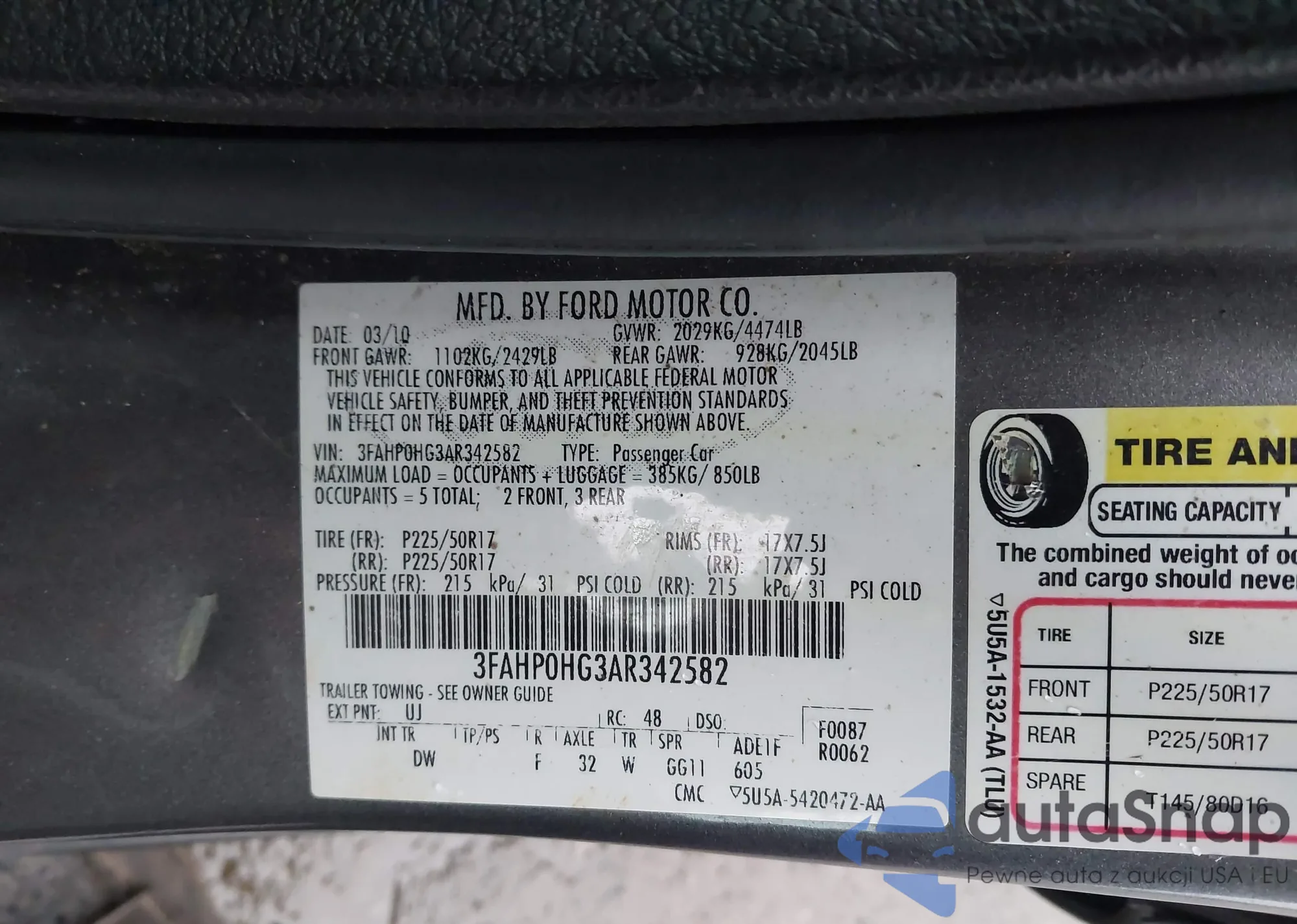 • VIN 3FAHP0HG3AR342582