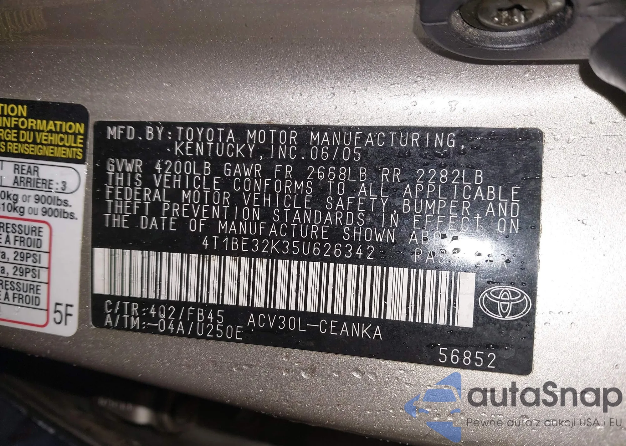 • VIN 4T1BE32K35U626342