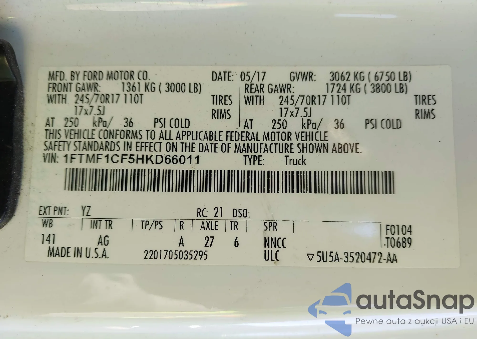 • VIN 1FTMF1CF5HKD66011