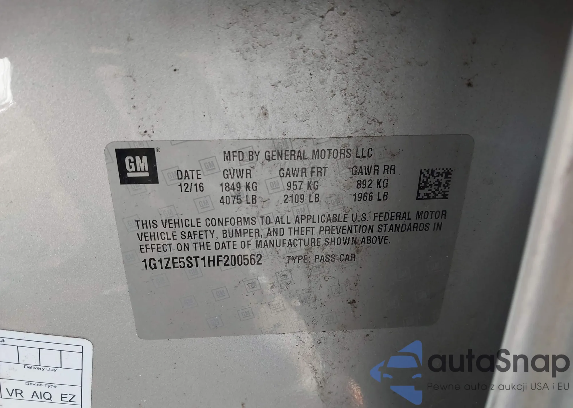 • VIN 1G1ZE5ST1HF200562