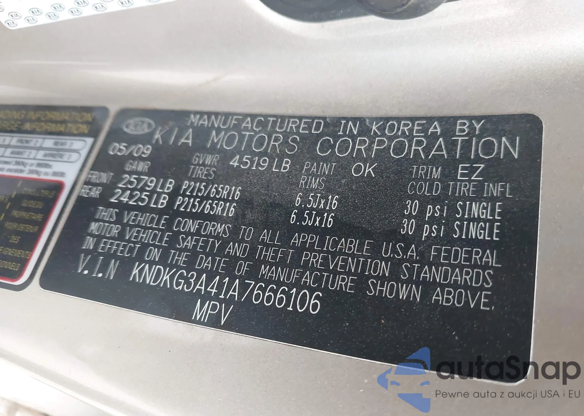 • VIN KNDKG3A41A7666106