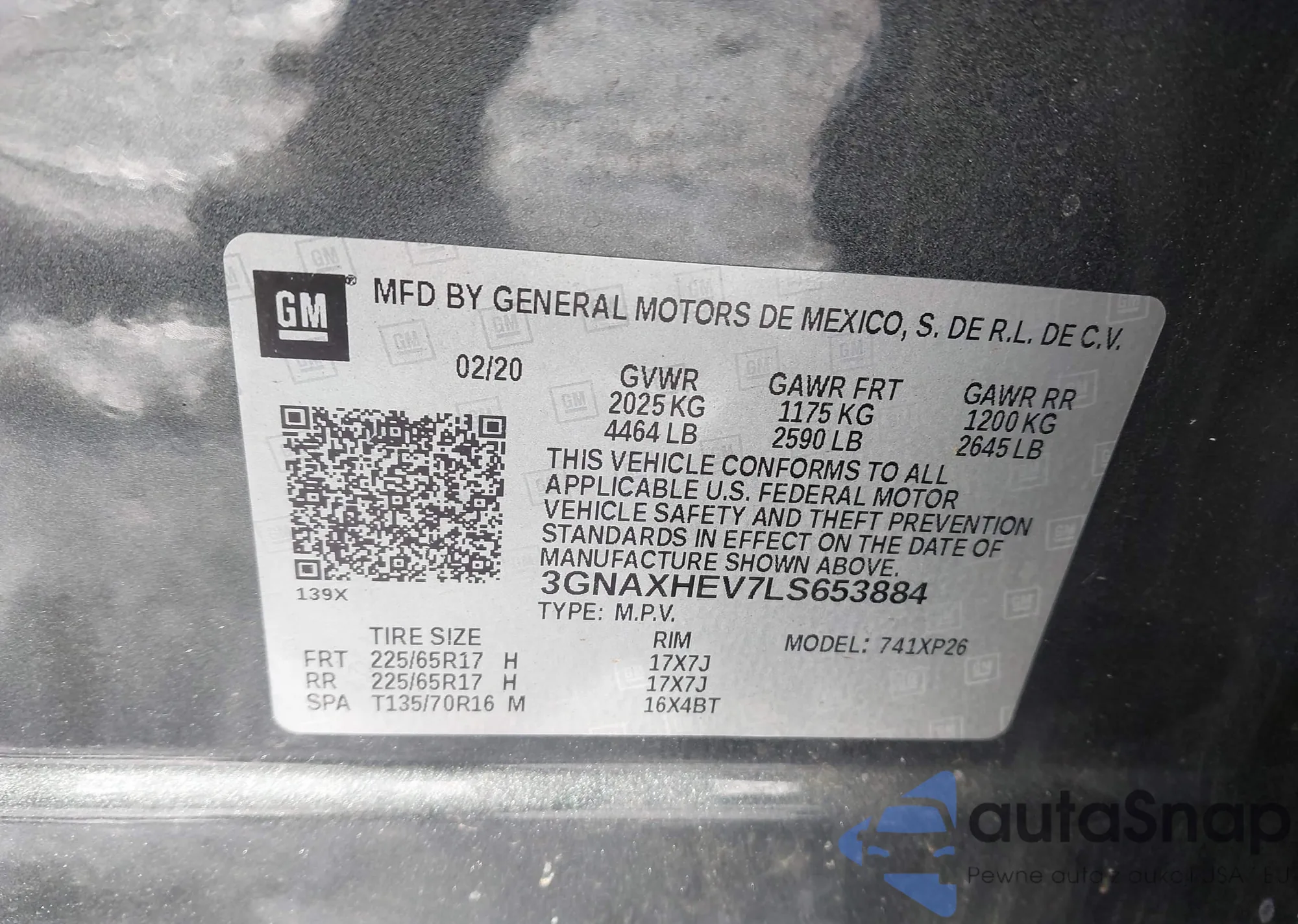 • VIN 3GNAXHEV7LS653884