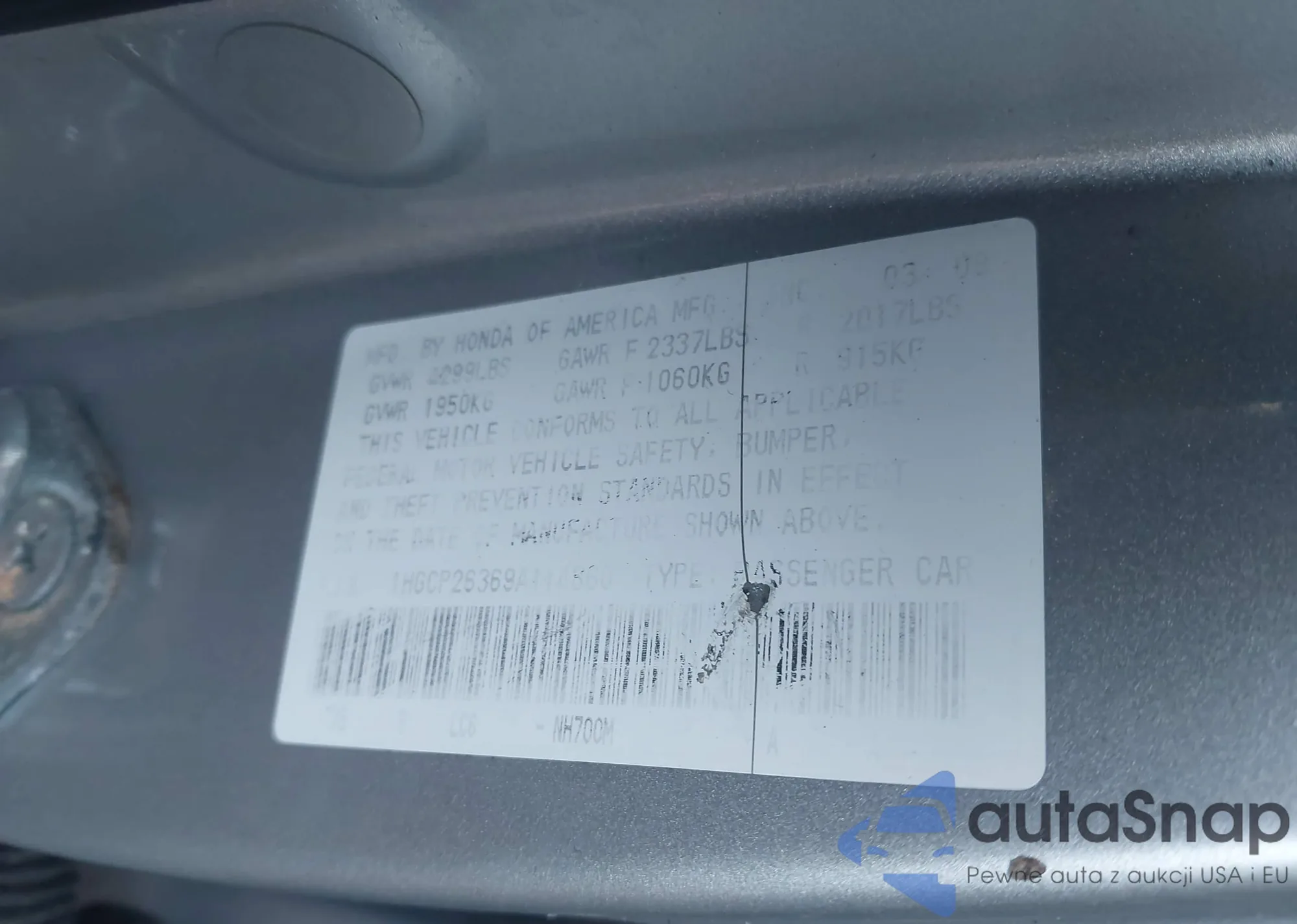 LOT: 44130571 VIN: 1HGCP26369A114860