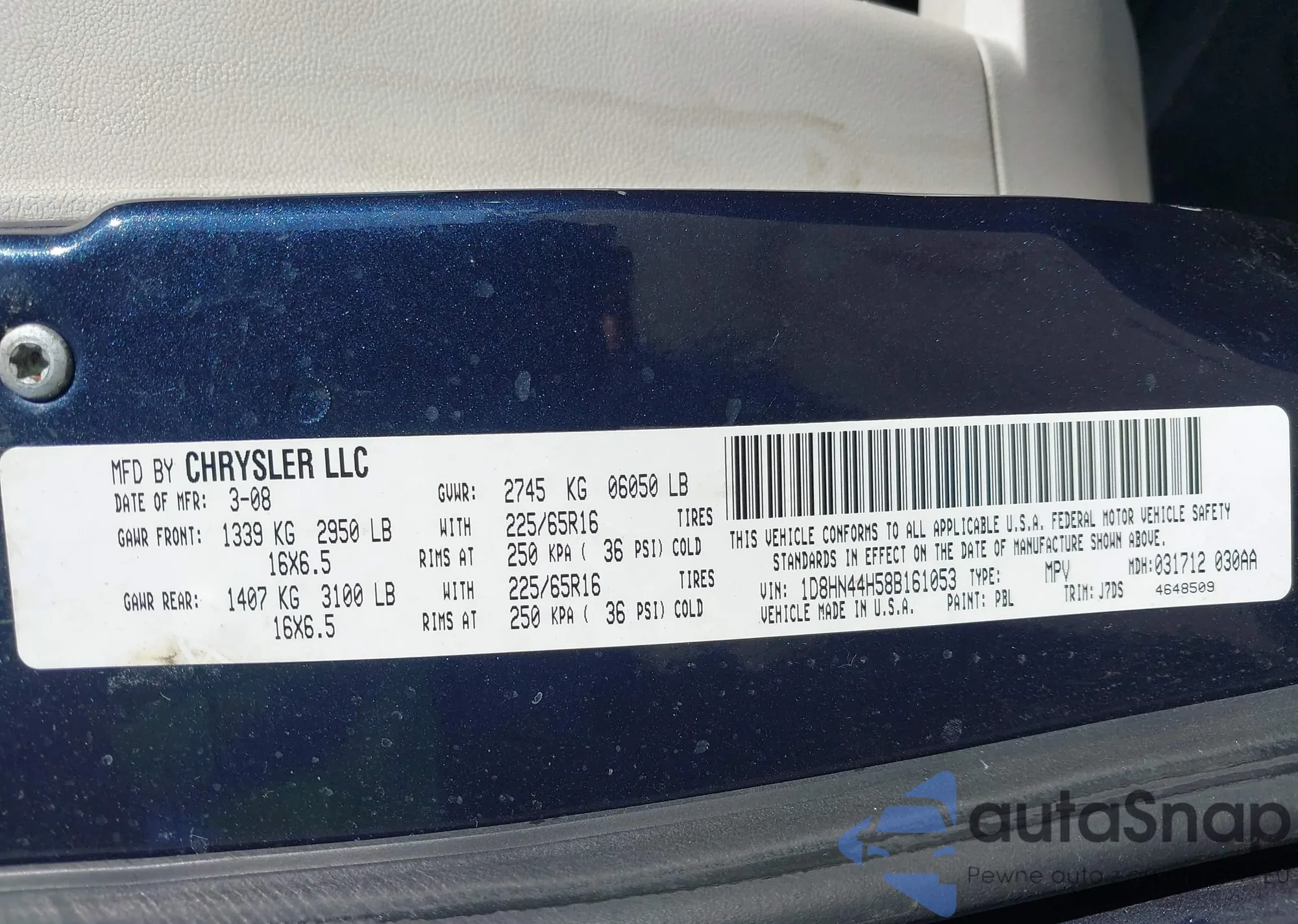 • VIN 1D8HN44H58B161053