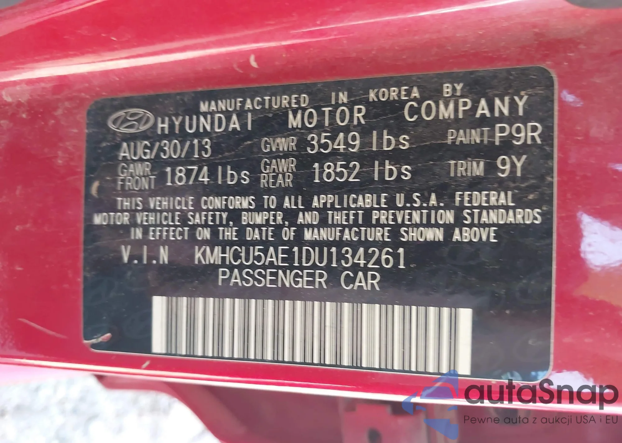 • VIN KMHCU5AE1DU134261