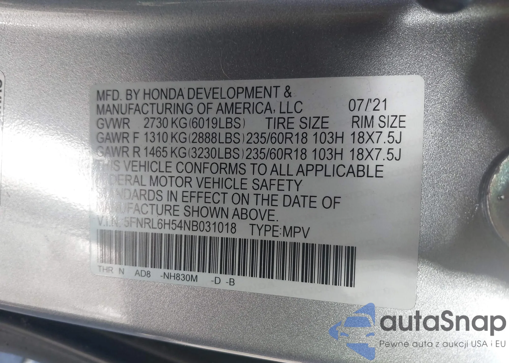 • VIN 5N1AT3AB0MC754013