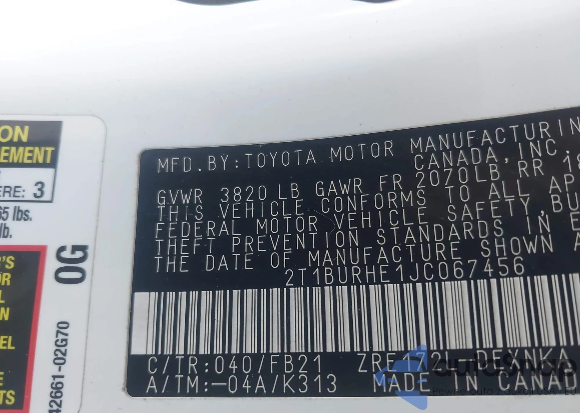 • VIN 2T1BURHE1JC067456