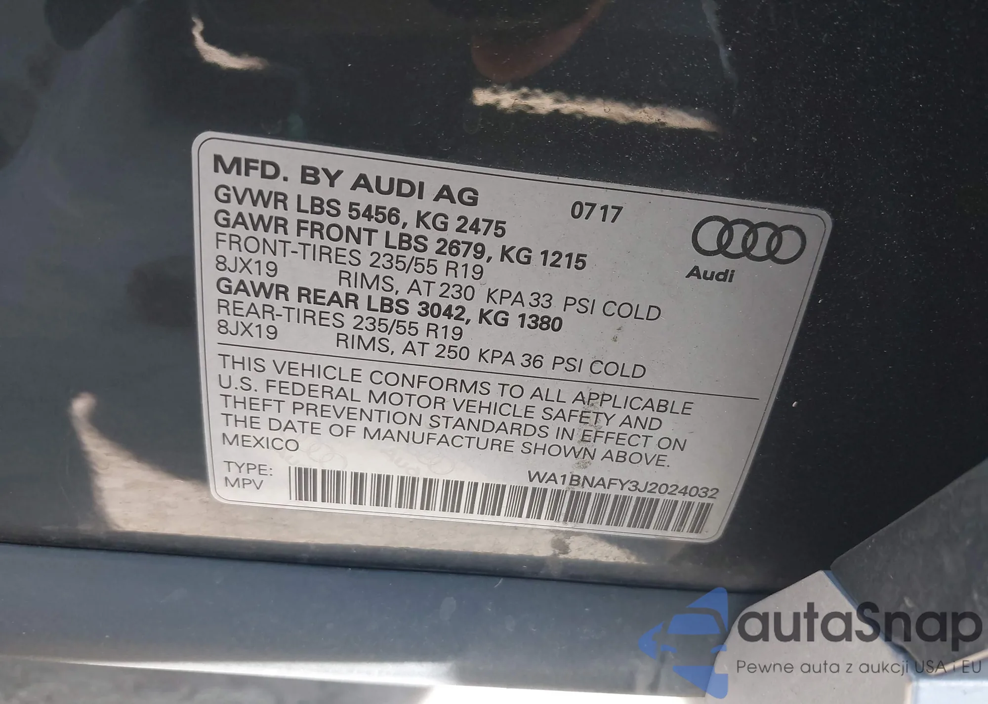 LOT: 43832909 VIN: WA1BNAFY3J2024032