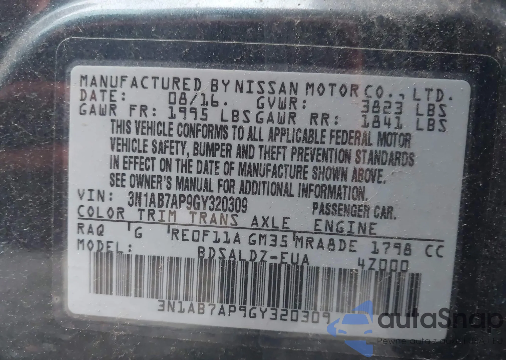 • VIN 3N1AB7AP9GY320309