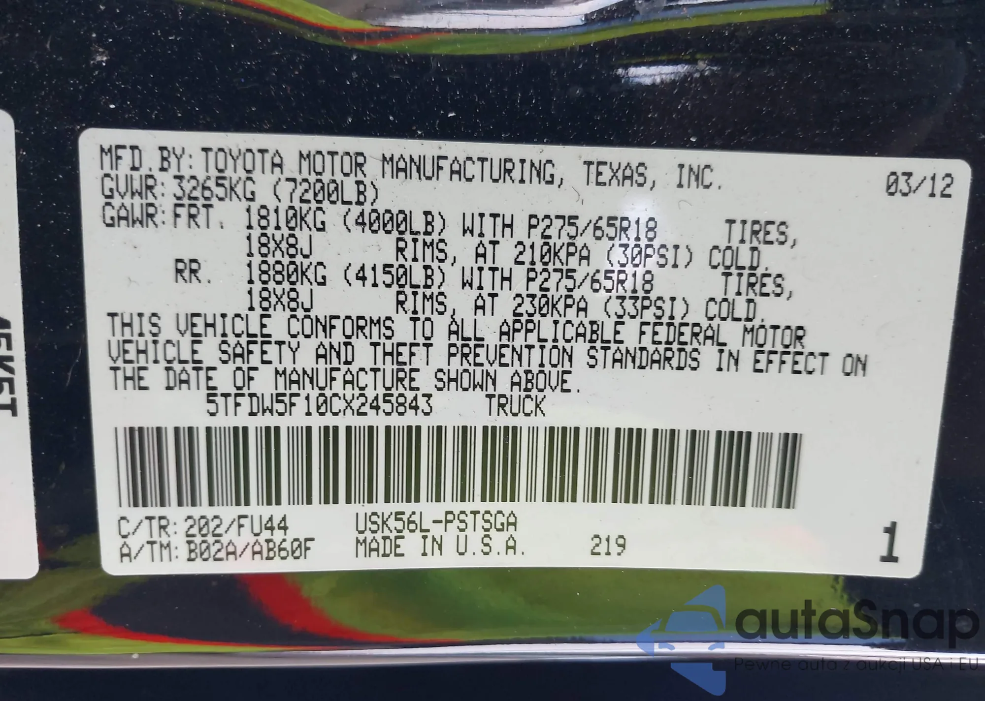 • VIN 5TFDW5F10CX245843
