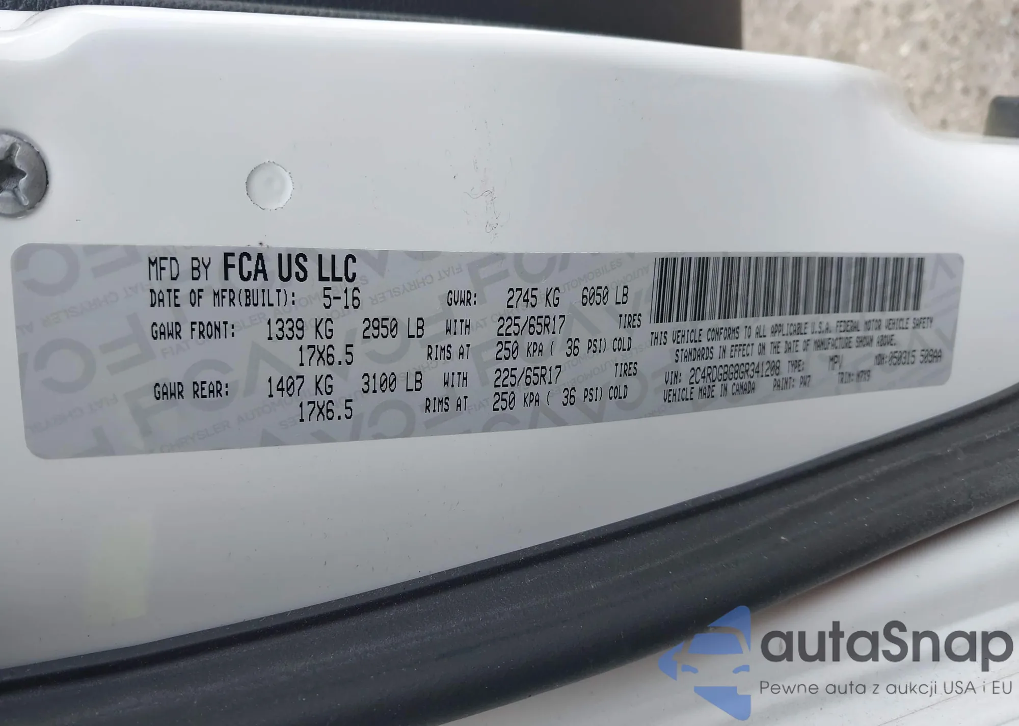 • VIN 2C4RDGBG8GR341208