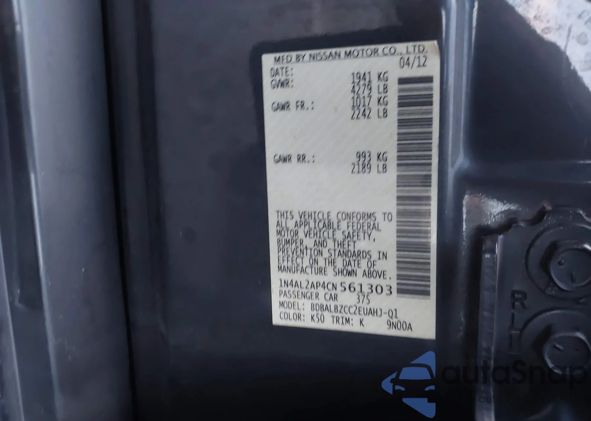 LOT: 43962201 VIN: 3N1AB7AP9GY320309