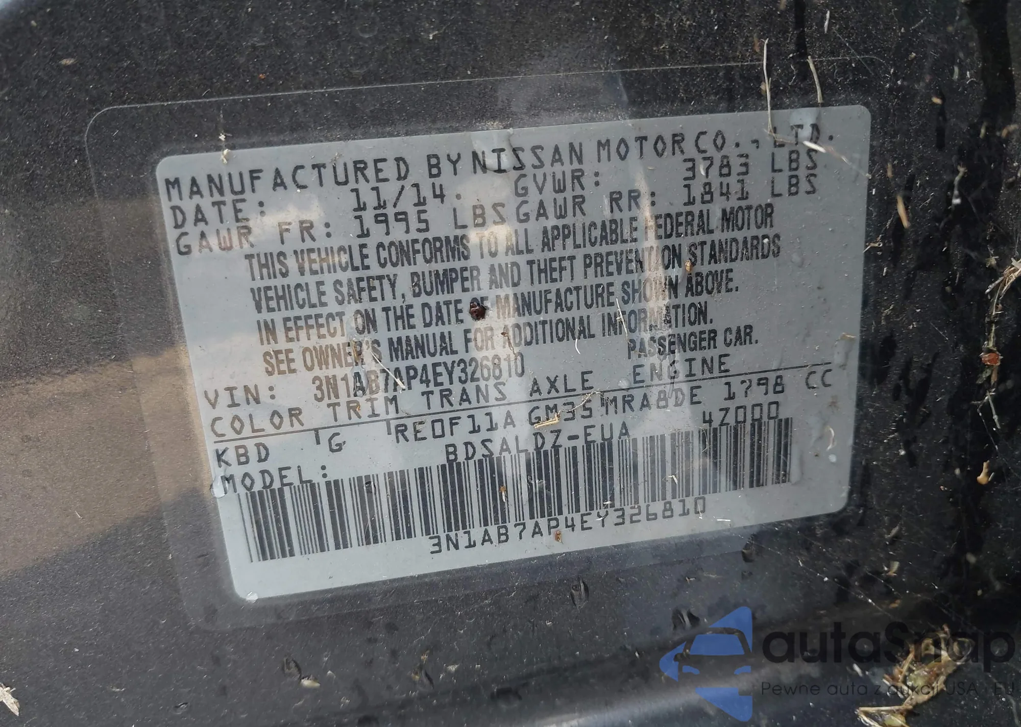 • VIN 3N1AB7AP4EY326810
