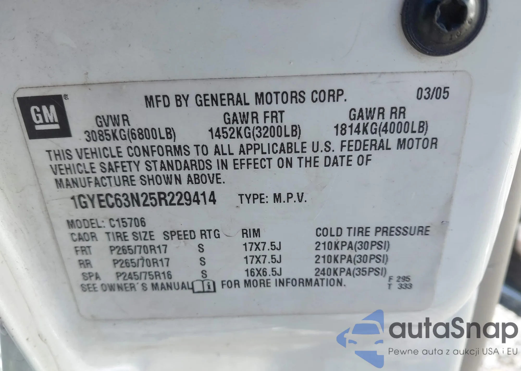 LOT: 44131829 VIN: 1GYEC63N25R229414