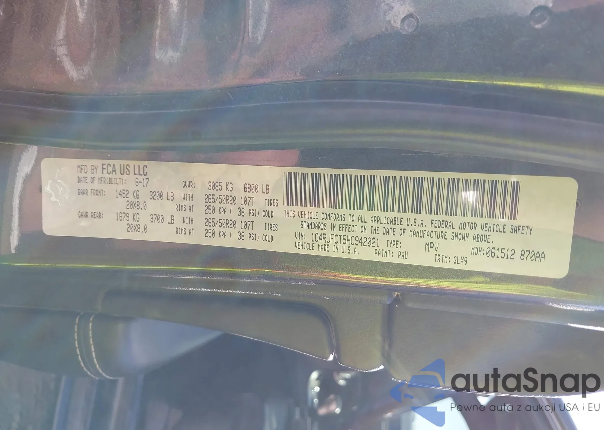 • VIN 1C4RJFCT5HC942021
