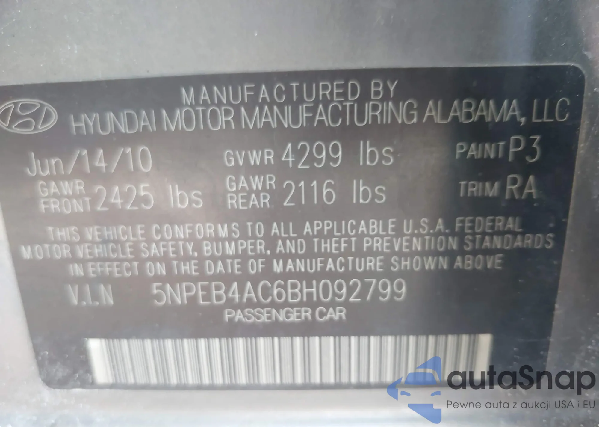 • VIN 5NPEB4AC6BH092799