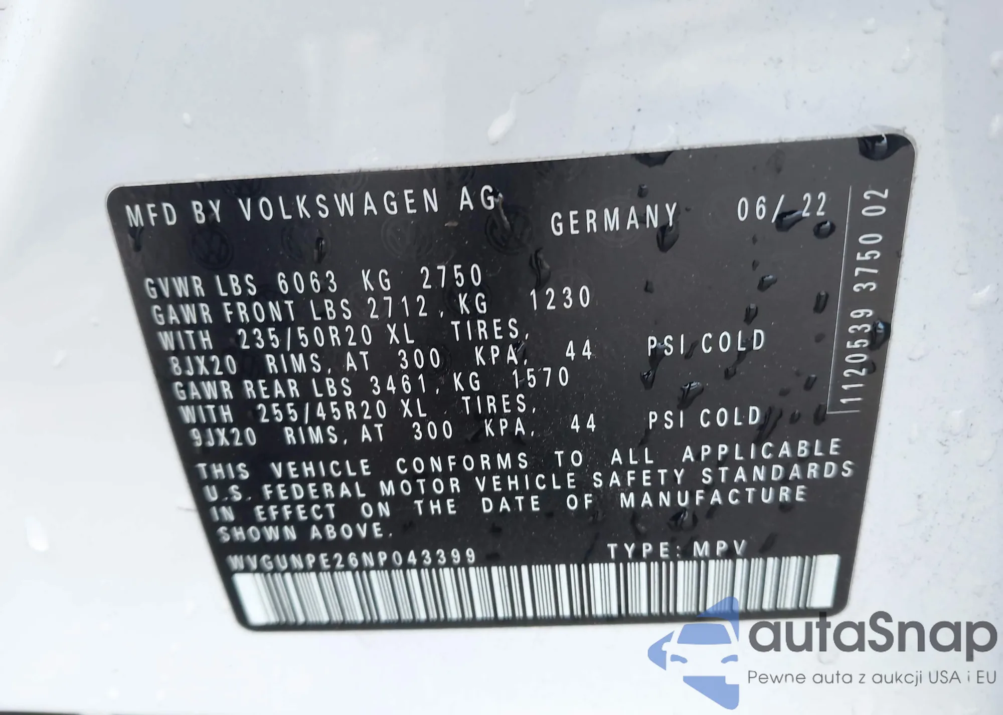 LOT: 44036705 VIN: WVGUNPE26NP043399