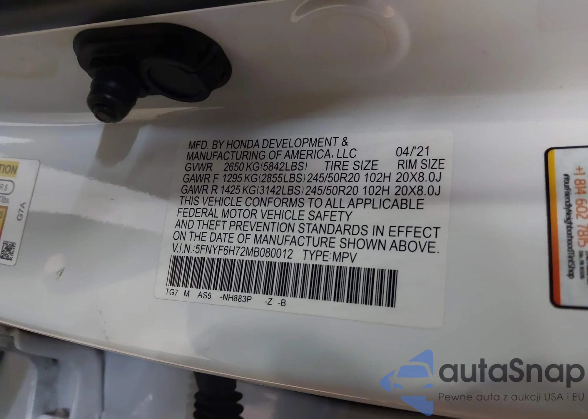 • VIN 5FNRL6H84NB027030