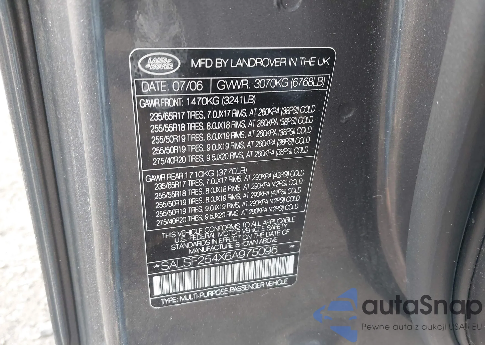 • VIN SALSF254X6A975096