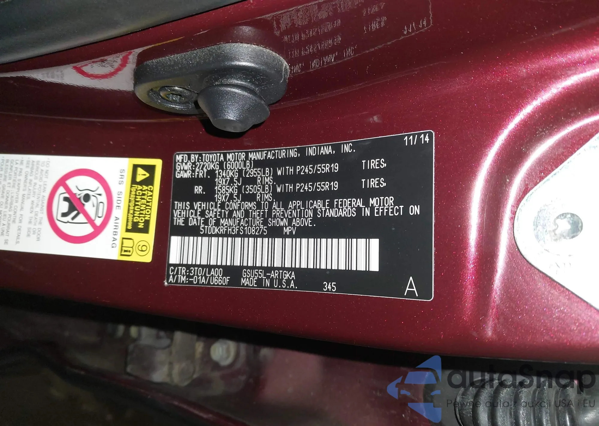 LOT: 44171264 VIN: 5TDDKRFH3FS108275