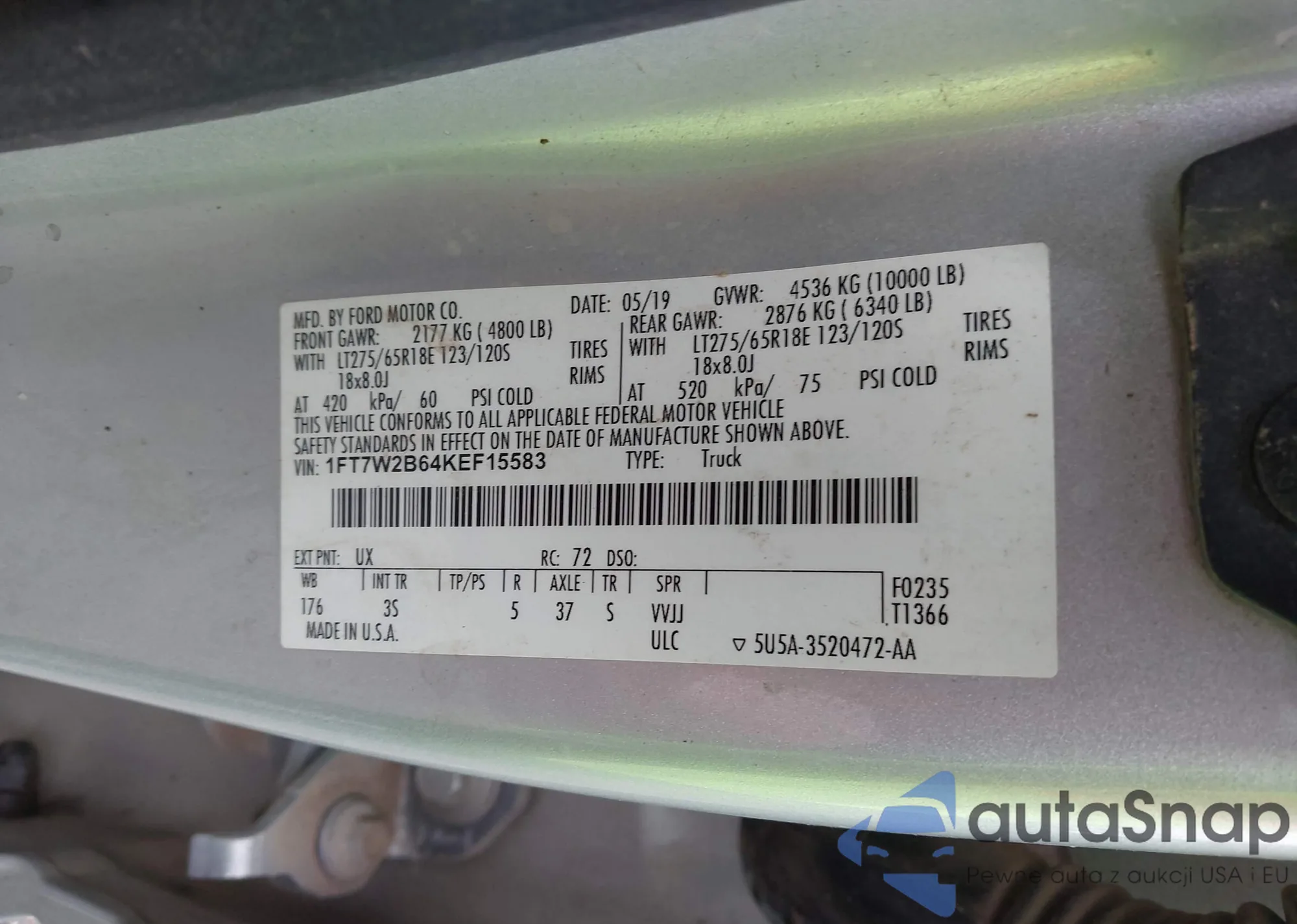 • VIN 1FT7W2B64KEF15583