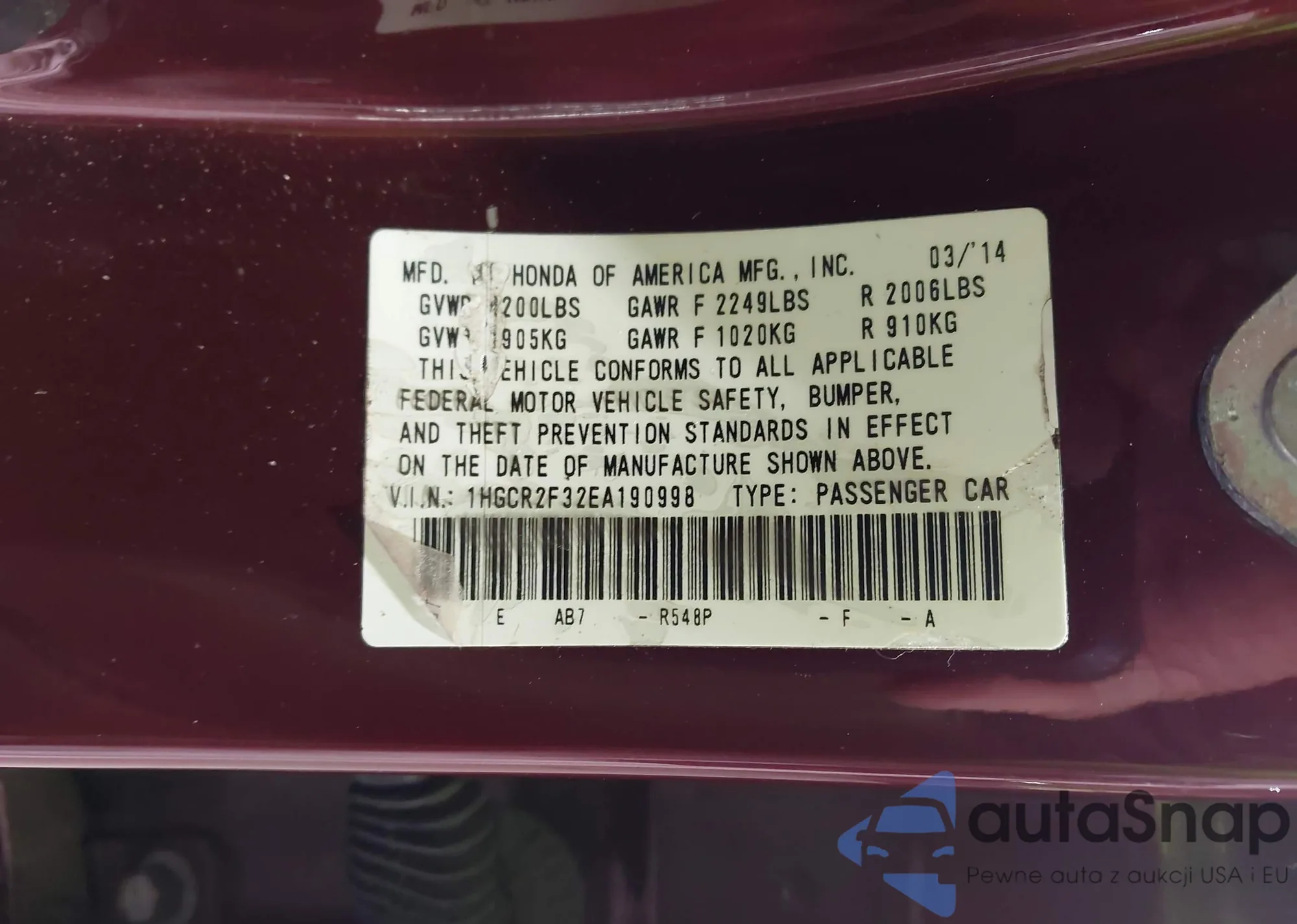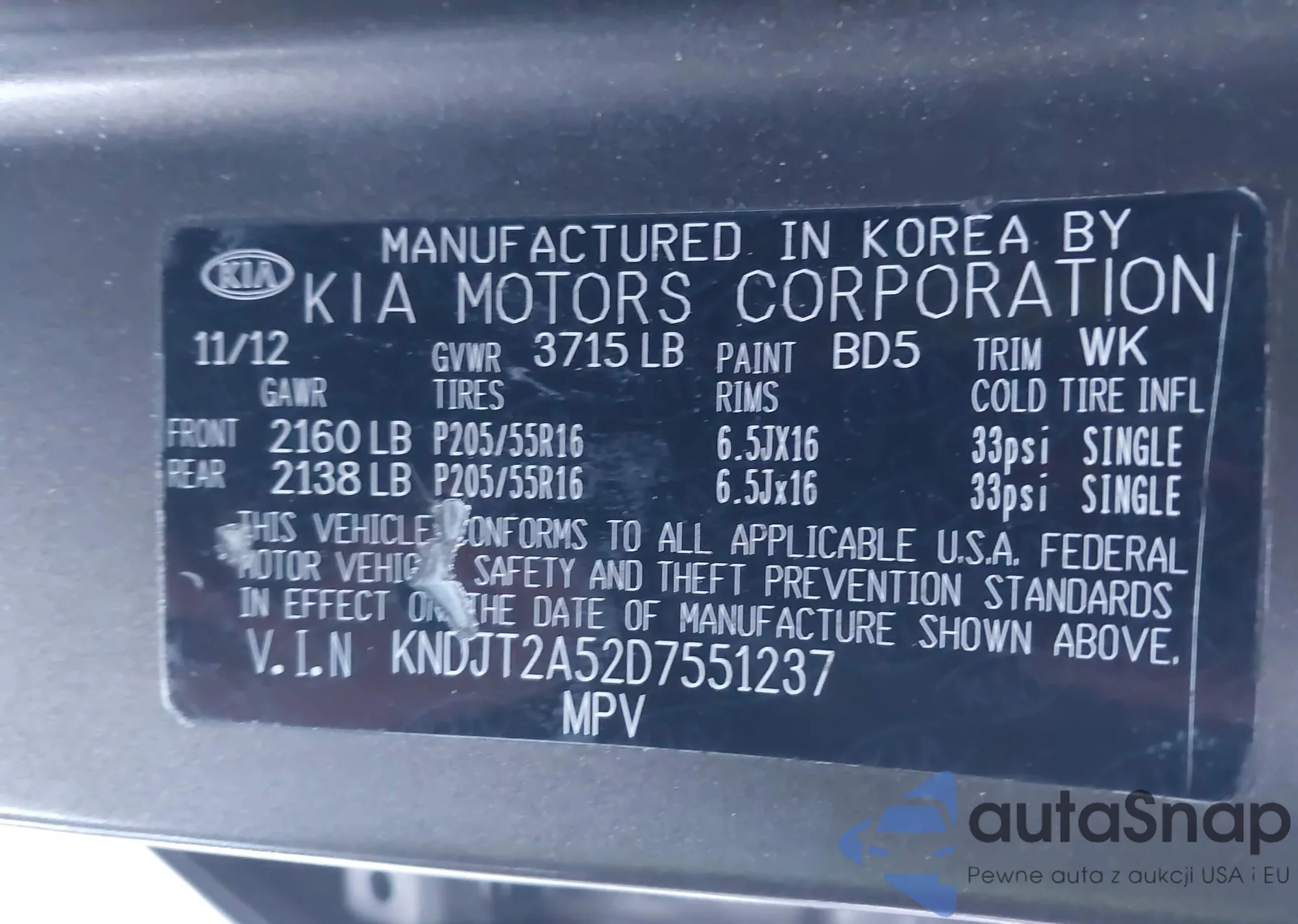 LOT: 43963165 VIN: KNDJT2A52D7551237