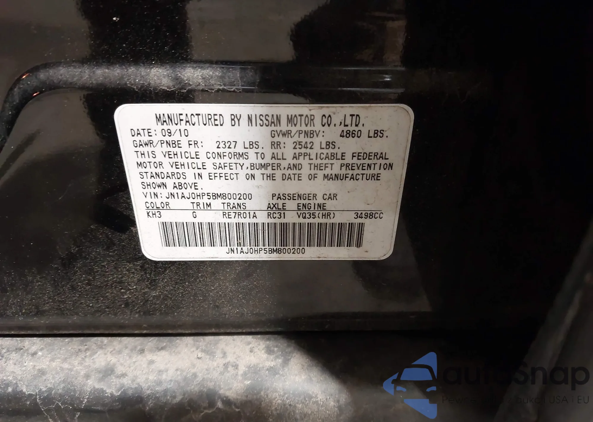• VIN JN1AJ0HP5BM800200