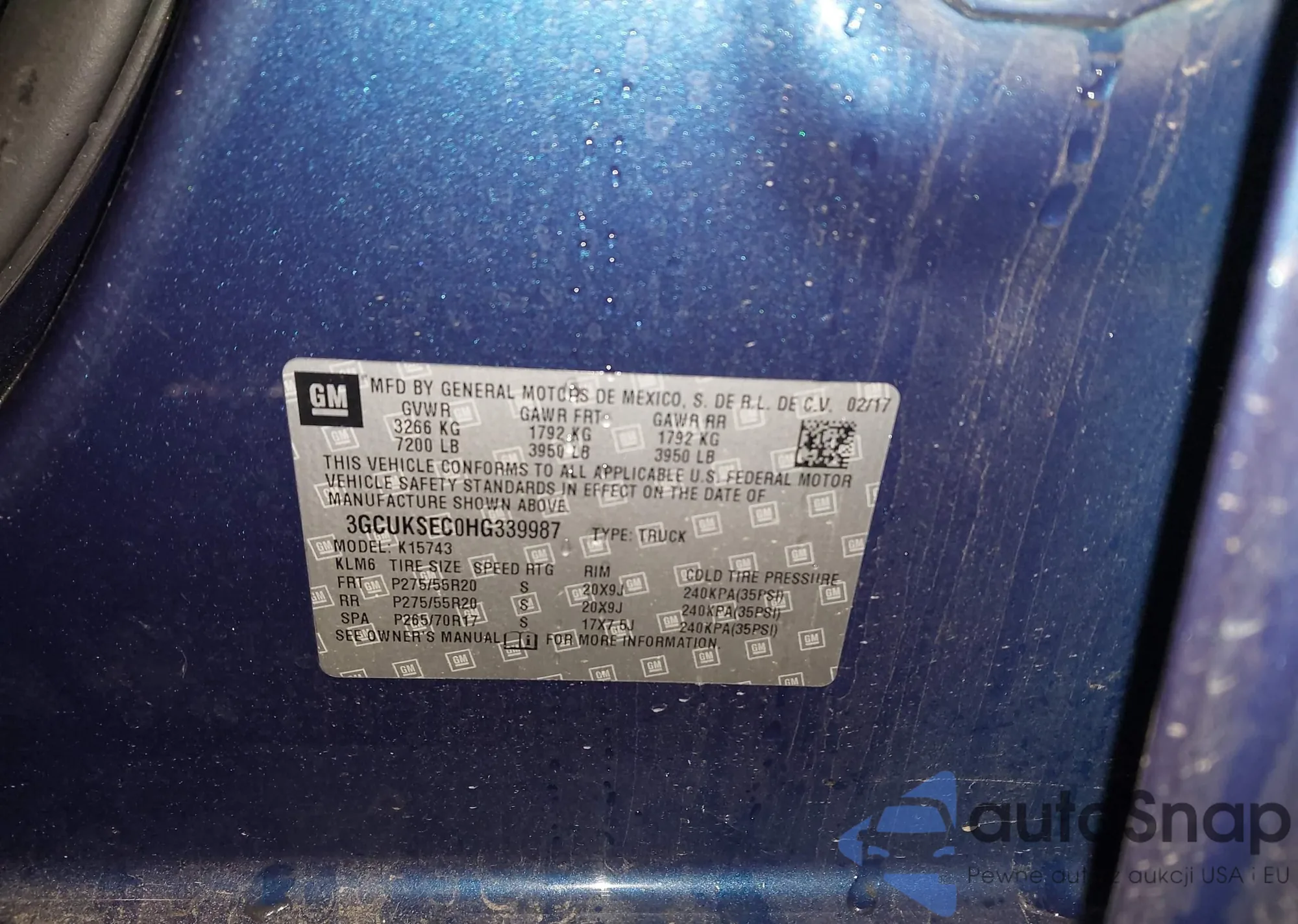 LOT: 43838995 VIN: 1GNSKKKC6FR254278