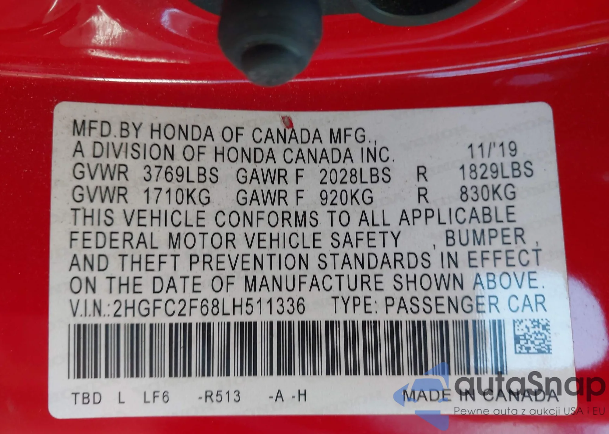 LOT: 43863254 VIN: 3CZRU5H54MM722920