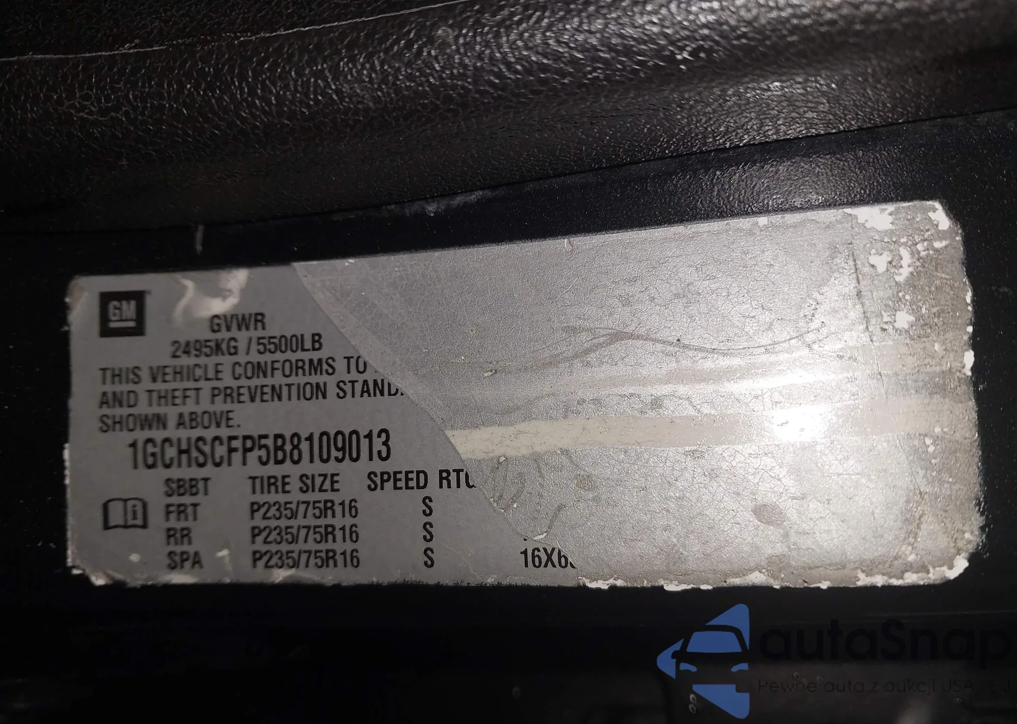• VIN 1GCHSCFP5B8109013