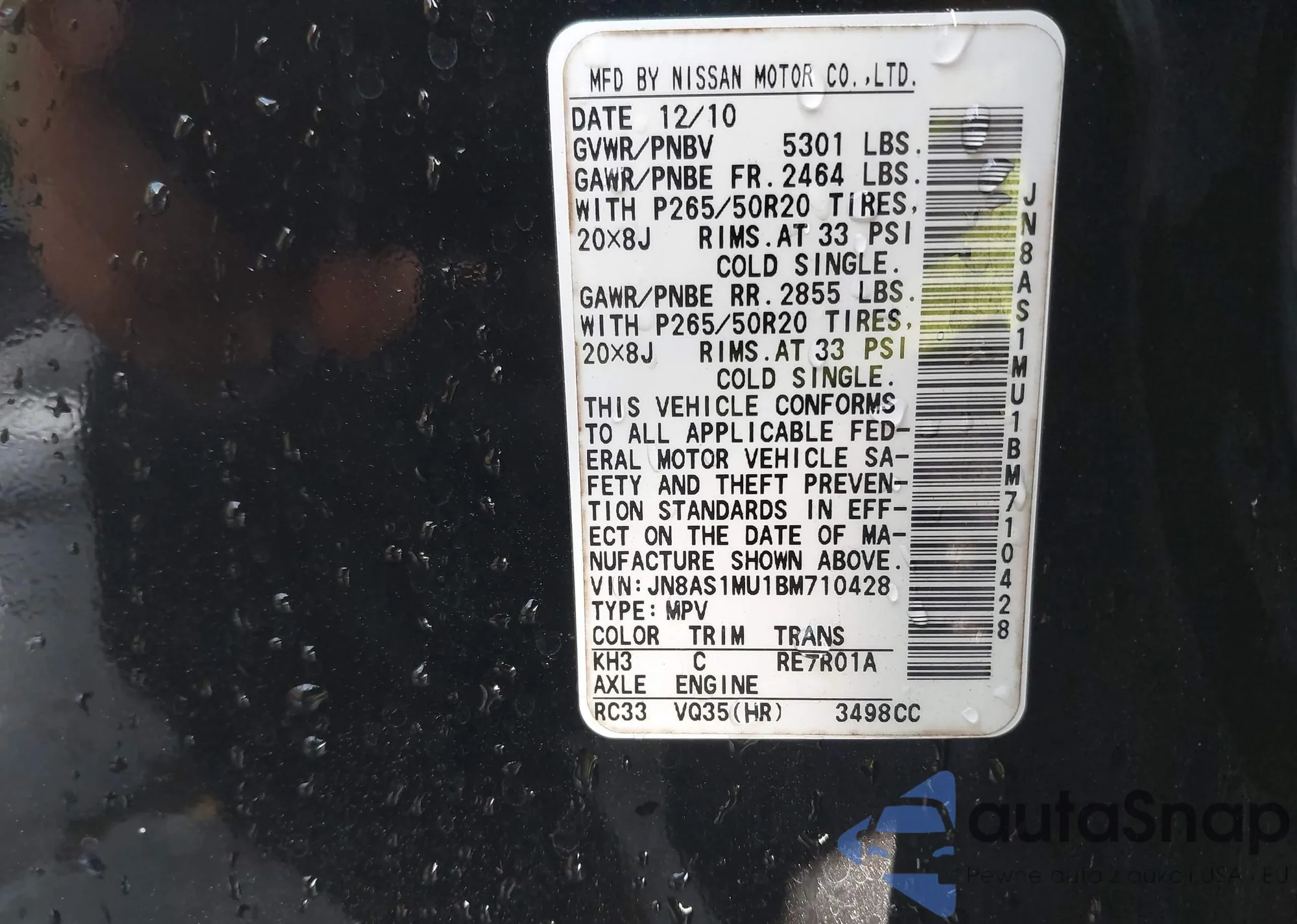 • VIN WMWZB3C59BWH94815