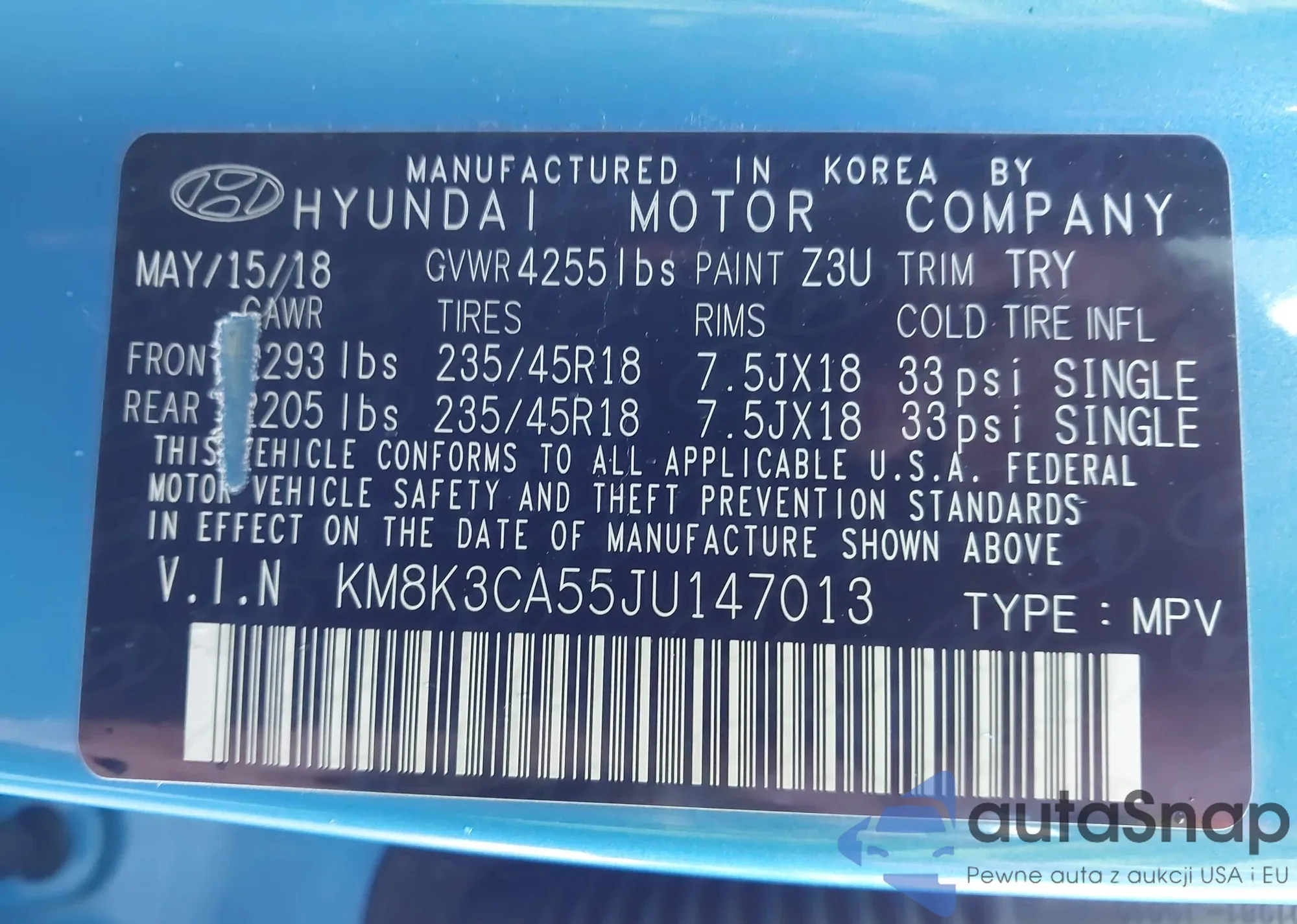 • VIN KM8K3CA55JU147013
