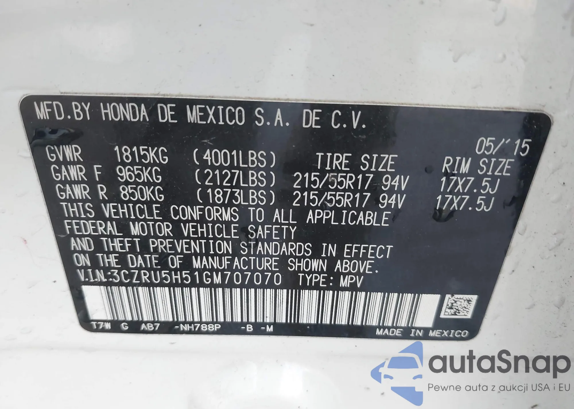 • VIN 3CZRZ2H3XSM792725