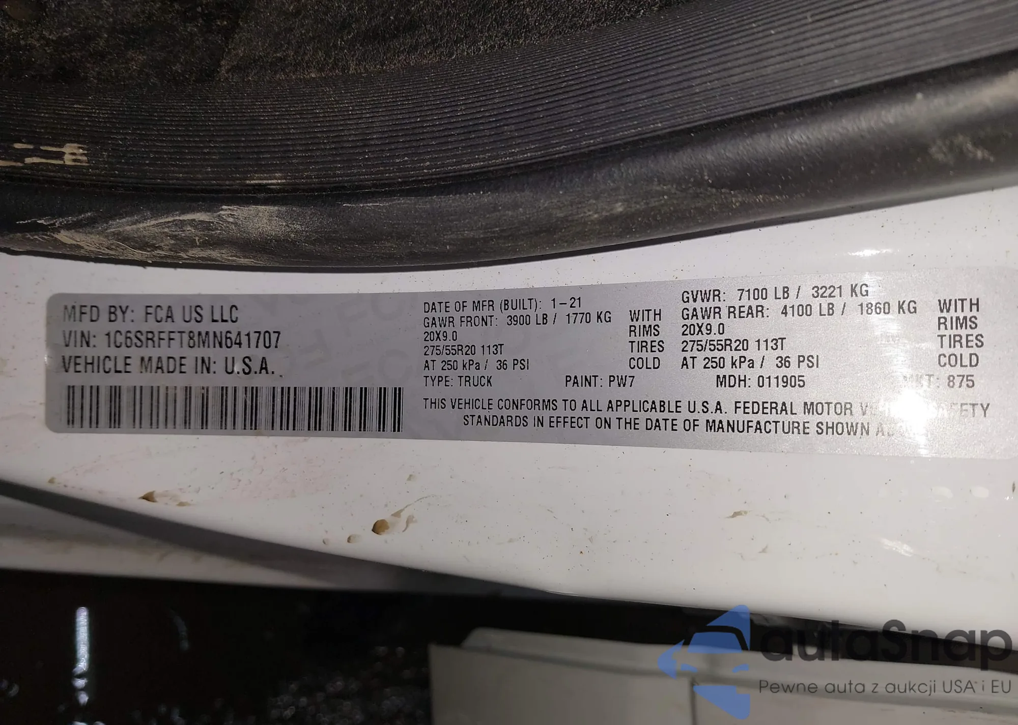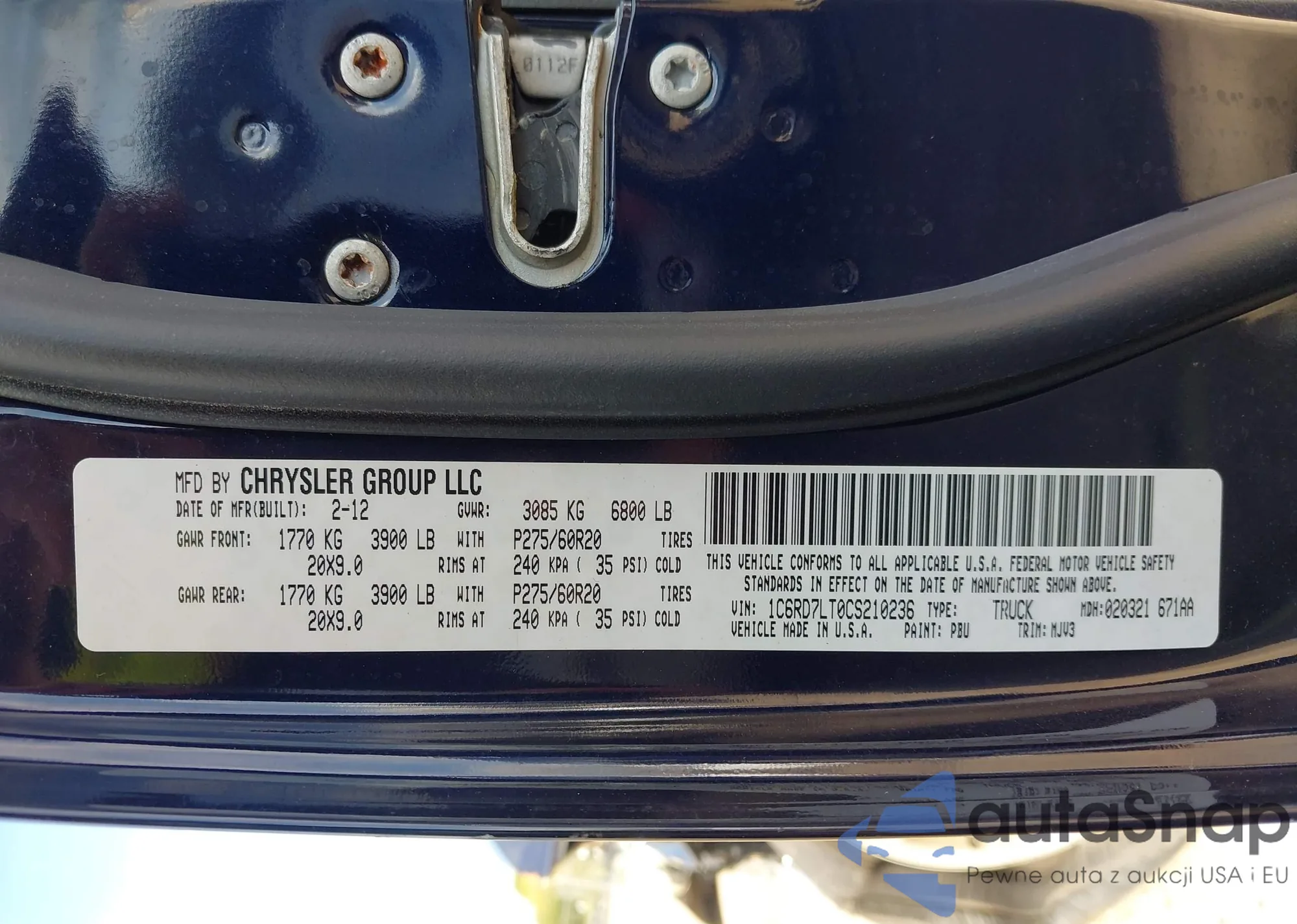 • VIN 1C6RD7LT0CS210236