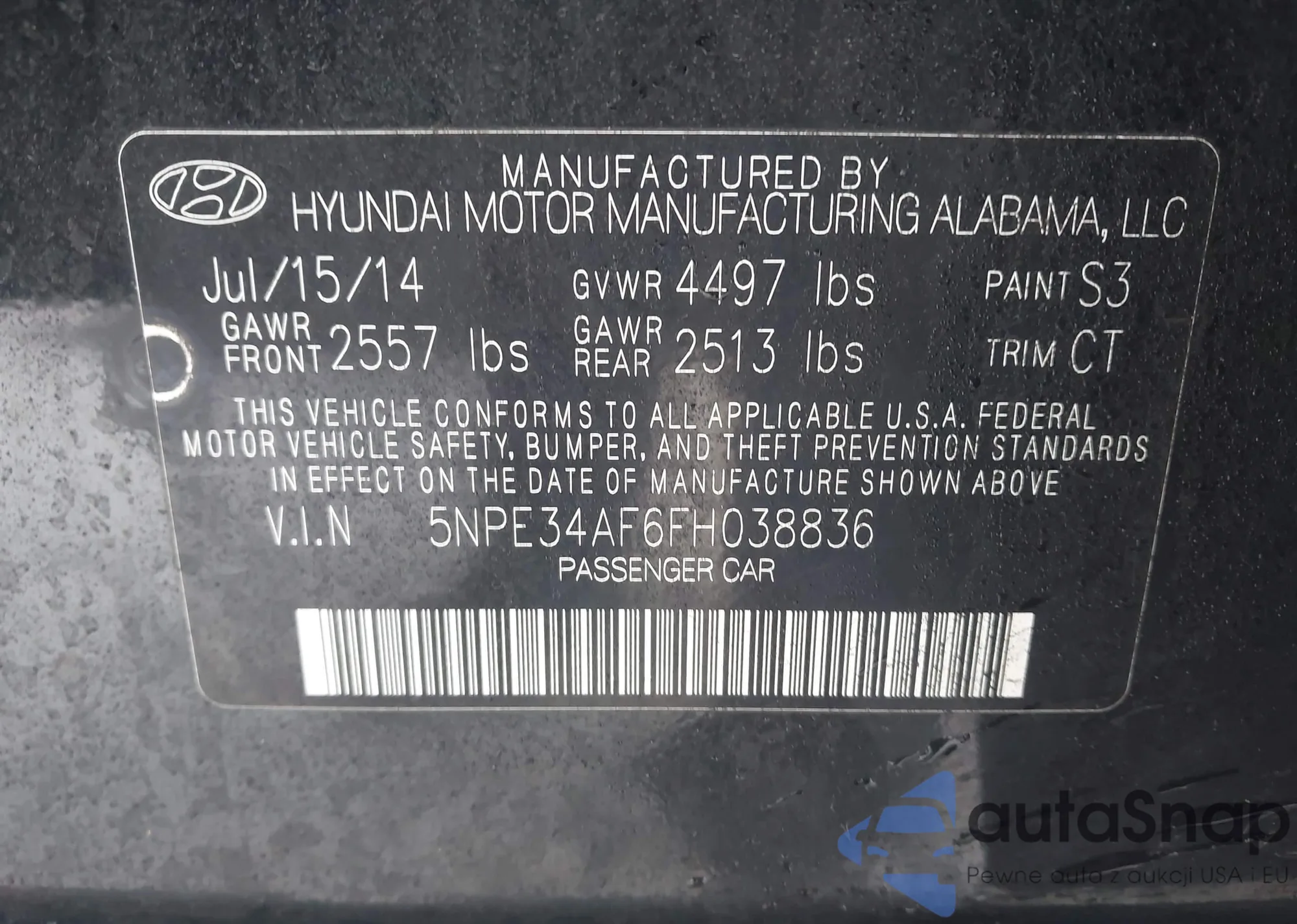 • VIN 5NPE34AF6FH038836