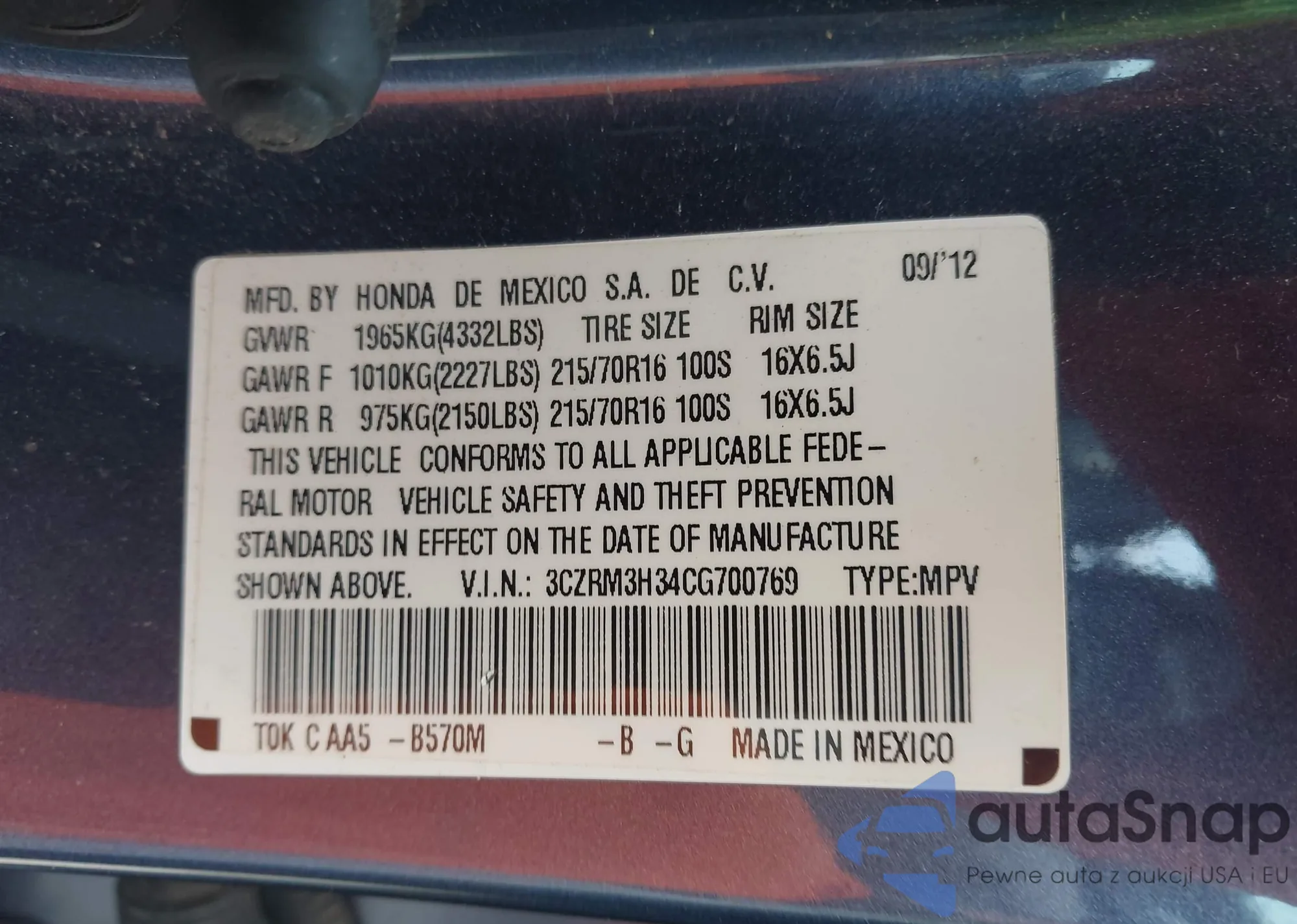 • VIN 3CZRM3H34CG700769