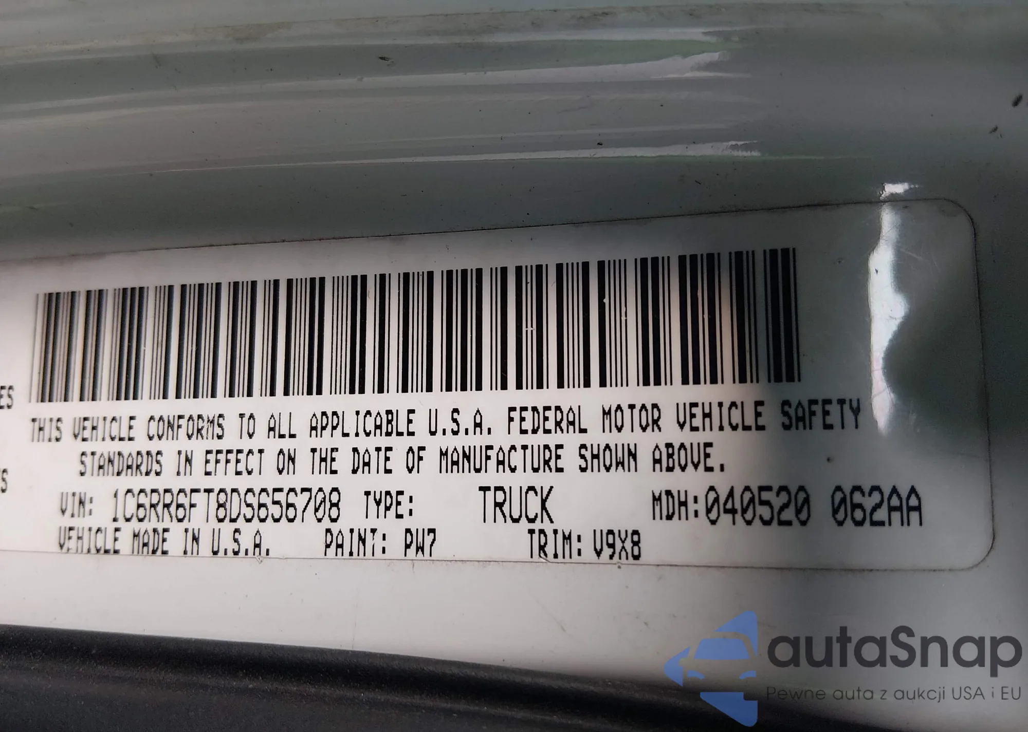 • VIN 1C6RR6FT8DS656708